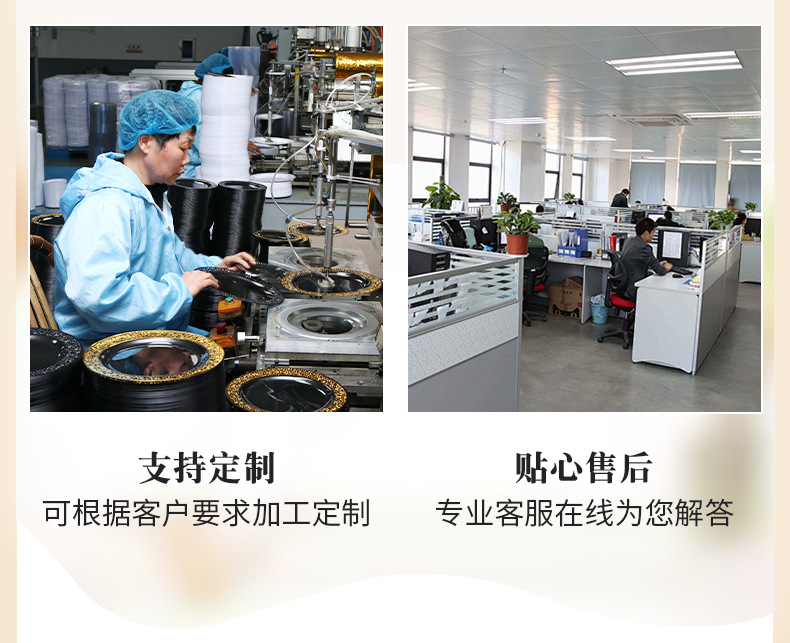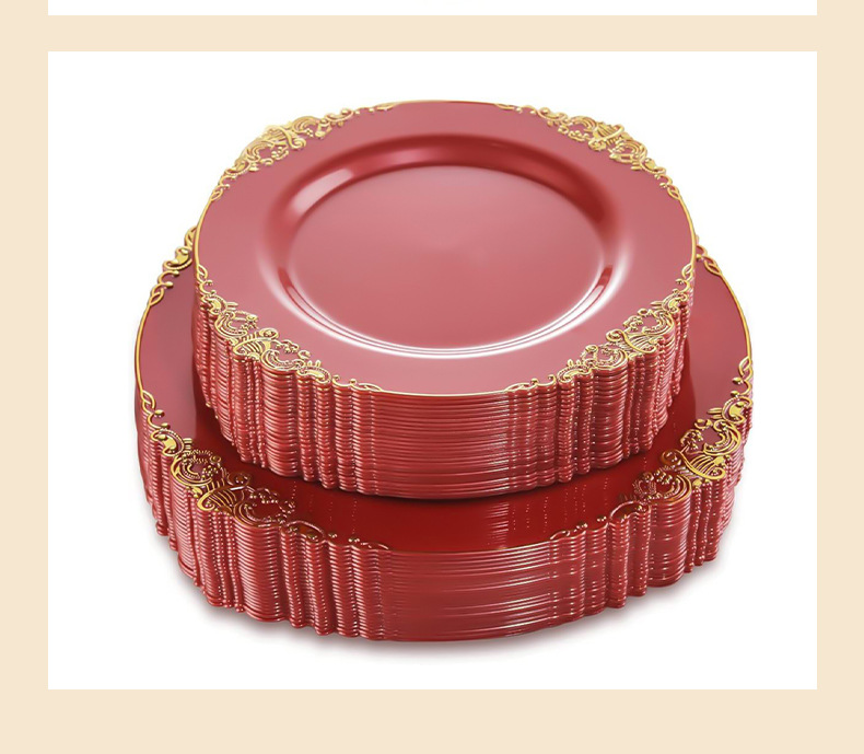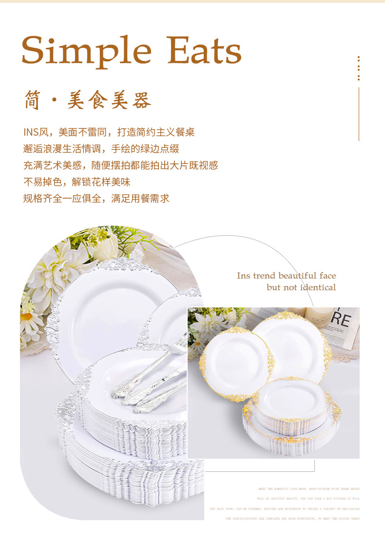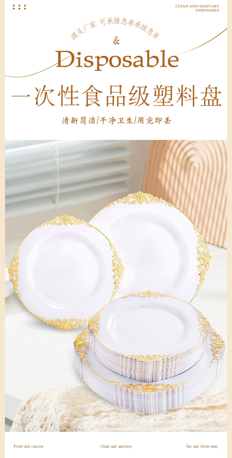 箔押し白色食器セット使い捨て食器盤黒色金辺浮き彫り盤ps硬質プラスチック対外貿易透明食器