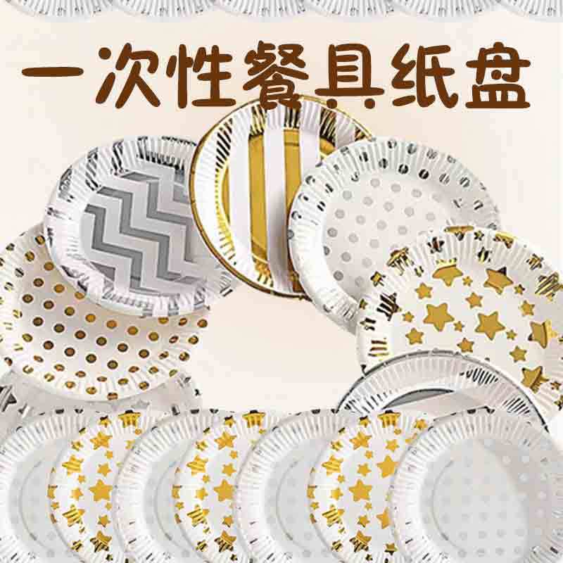7.5インチ19cm 10.25インチ26cm食品級ps使い捨てプラスチック箔押し皿自助誕生日パーティー