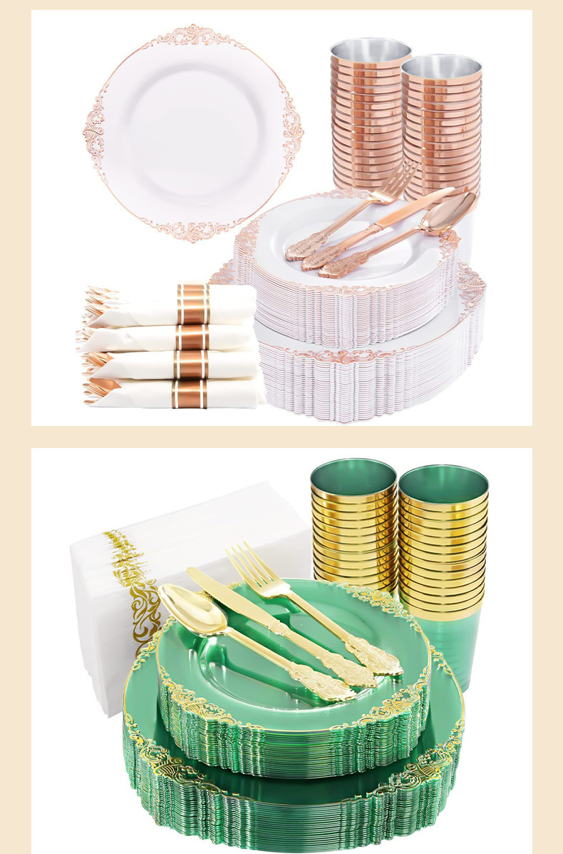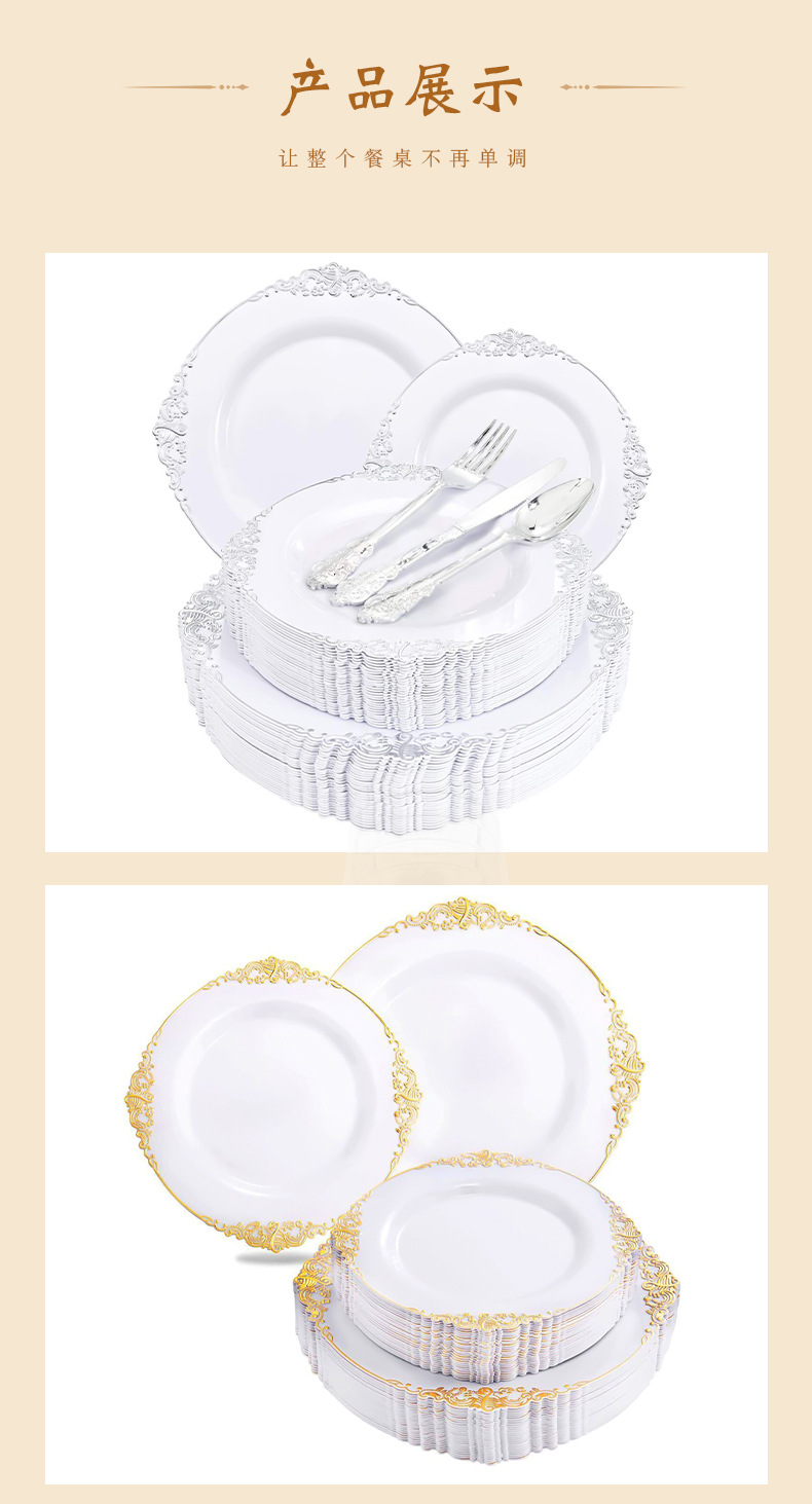 跨境专供一次性塑料派对宫廷复古风浮雕餐盘刀叉勺盘子可多种颜色