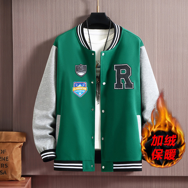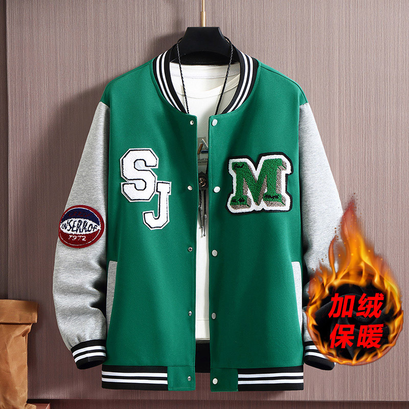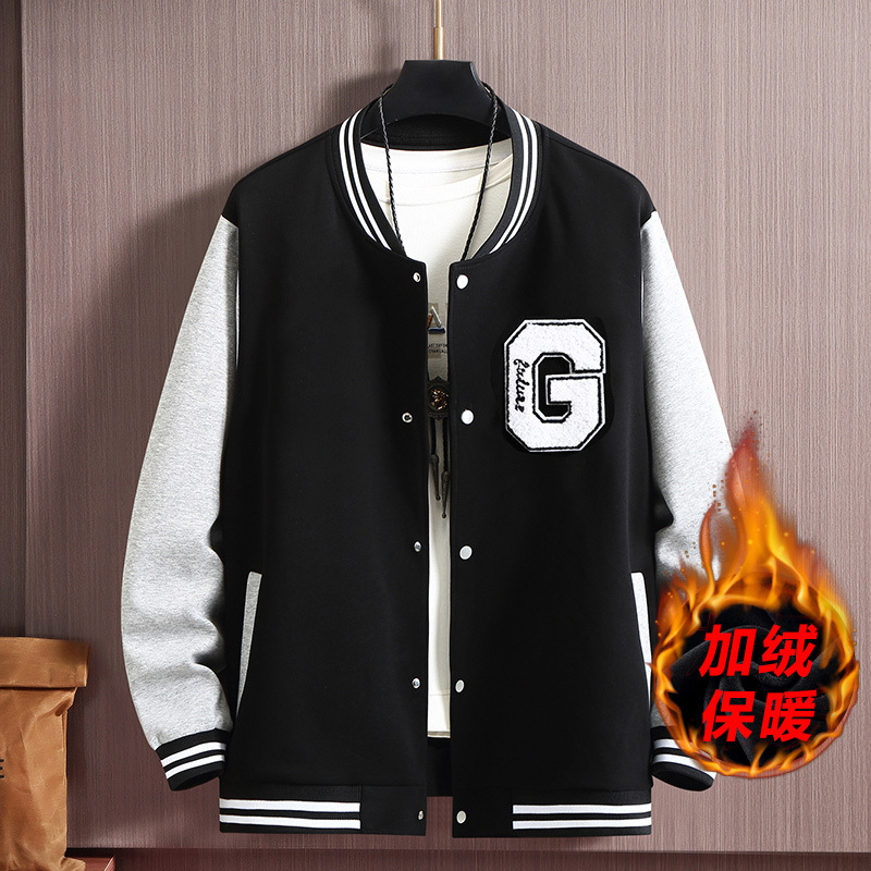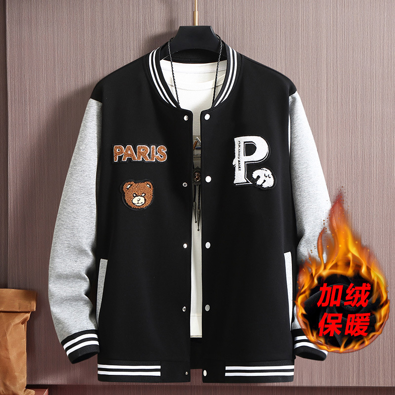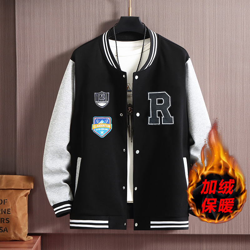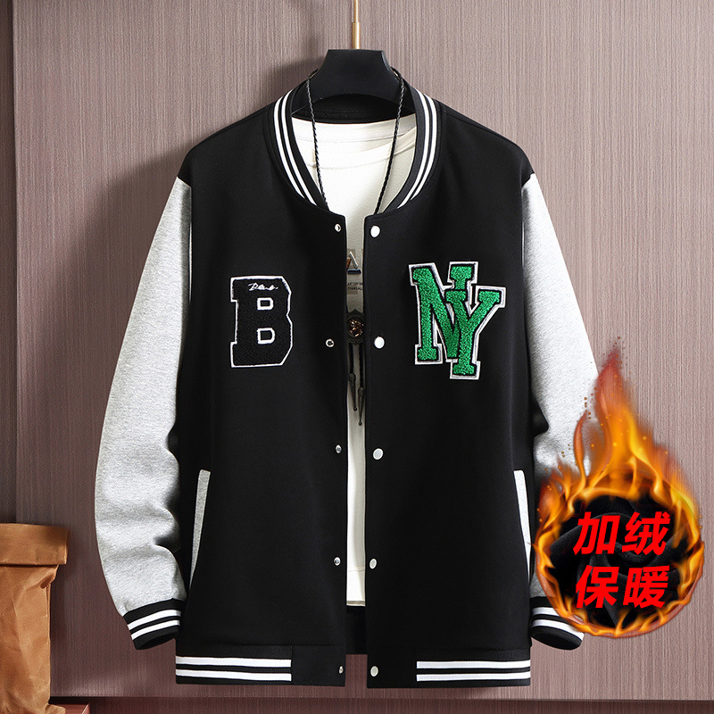 太った学生のコートの男性の潮流秋冬に肥料を加えて大きいサイズのゆったりしたカジュアルな紳士服とベルベットを加えて野球服を厚くする