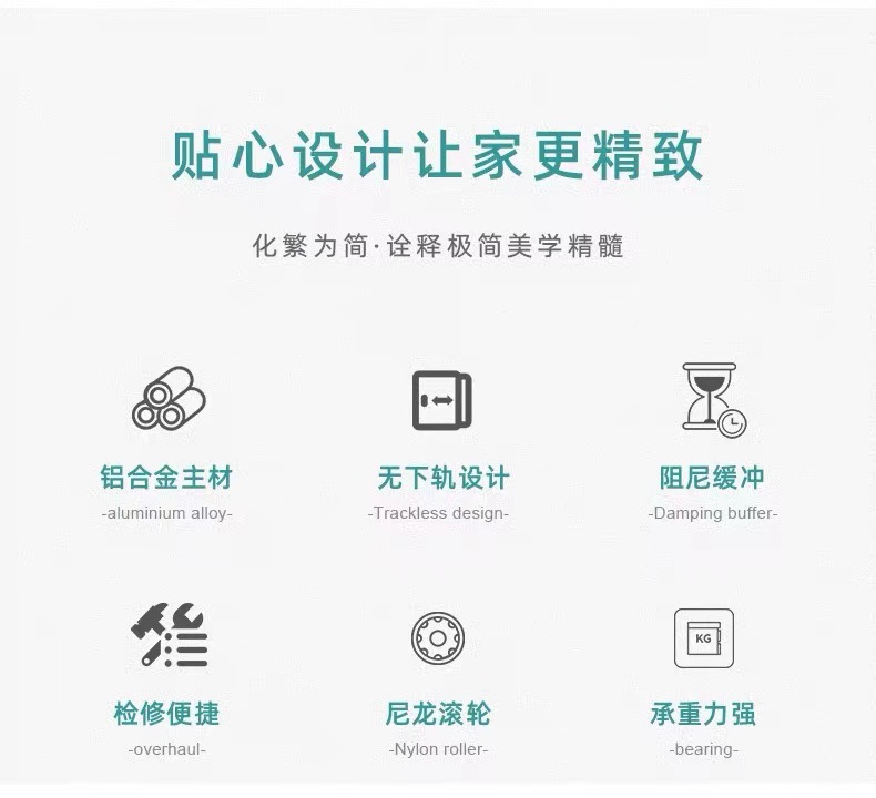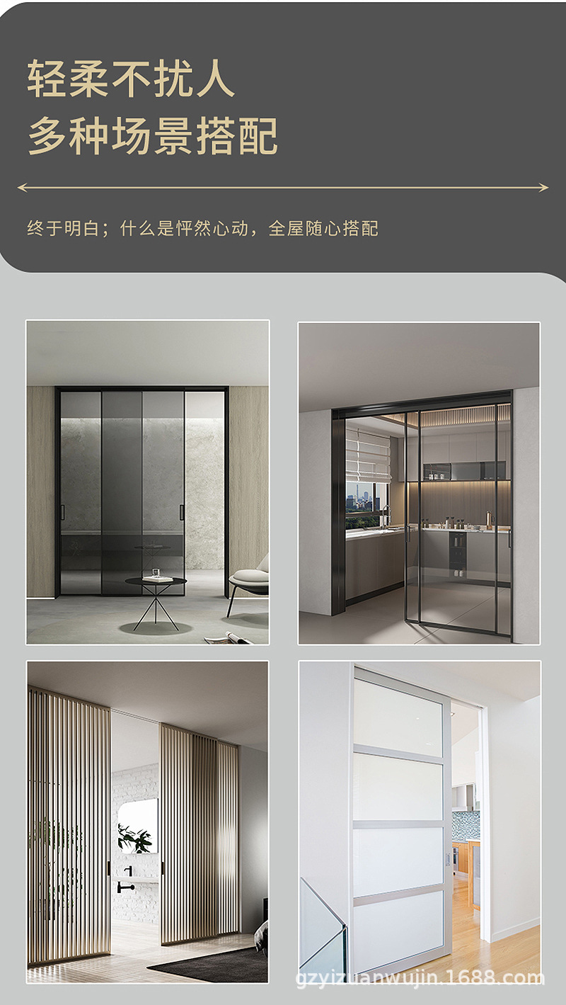 轻启动微缝口袋门轨道隐藏式厨房推拉木门线性型移门吊轨五金配件