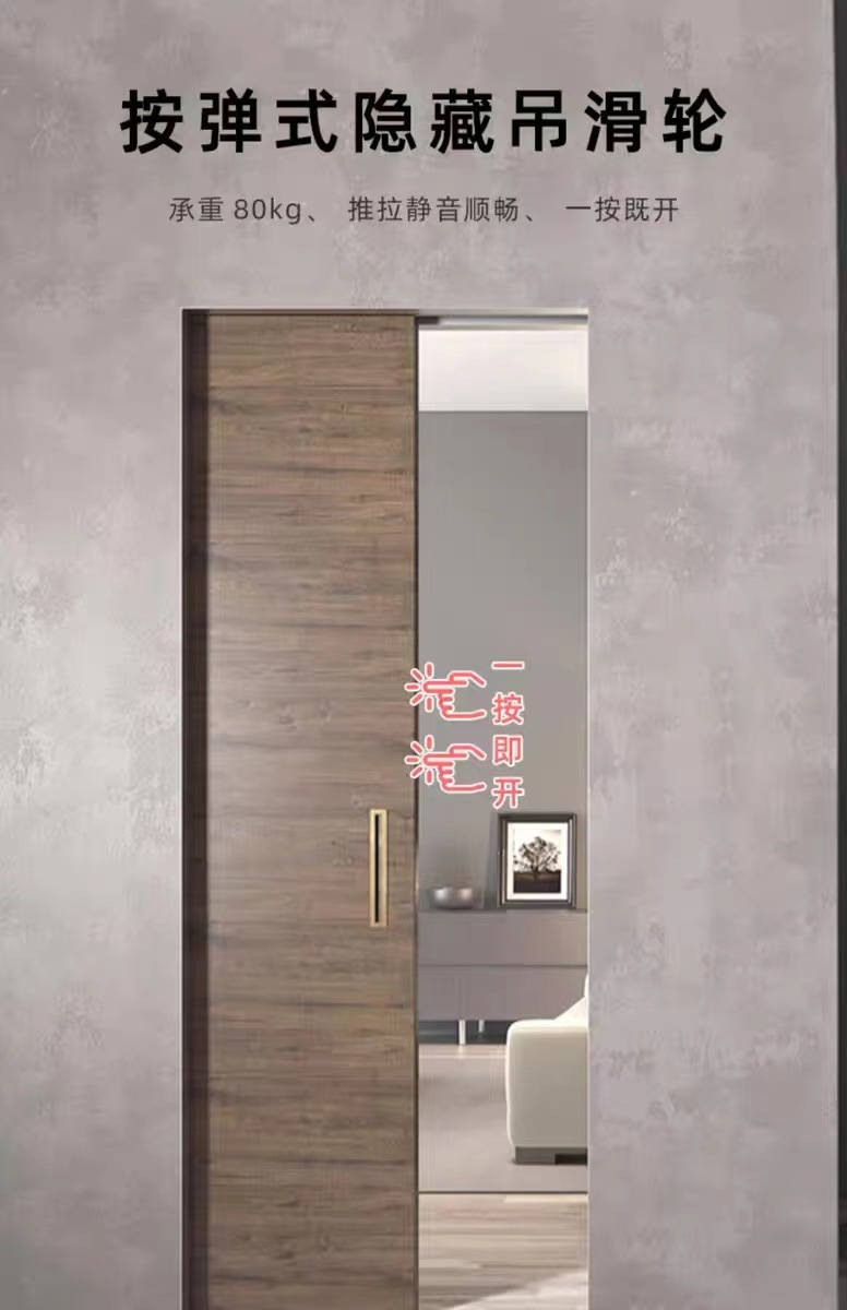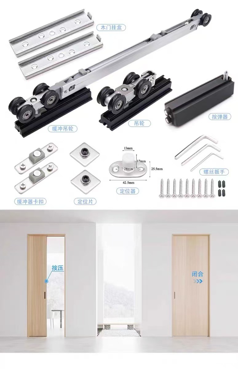 按弹式口袋门吊轨隐形推拉移门导轨阻尼缓冲趟门轨道滑轮全套五金
