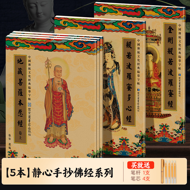 金剛経、般若心経、地蔵経、3巻箱入り(カスタマイズ版),カラフルギフトボックス:瞑想原稿シリーズ4巻,般若心経,大仏陀の頭のシュランガママントラ,地蔵菩薩本願経,金剛般若波羅蜜多経,経典写経用金ペン(一筆+四芯)