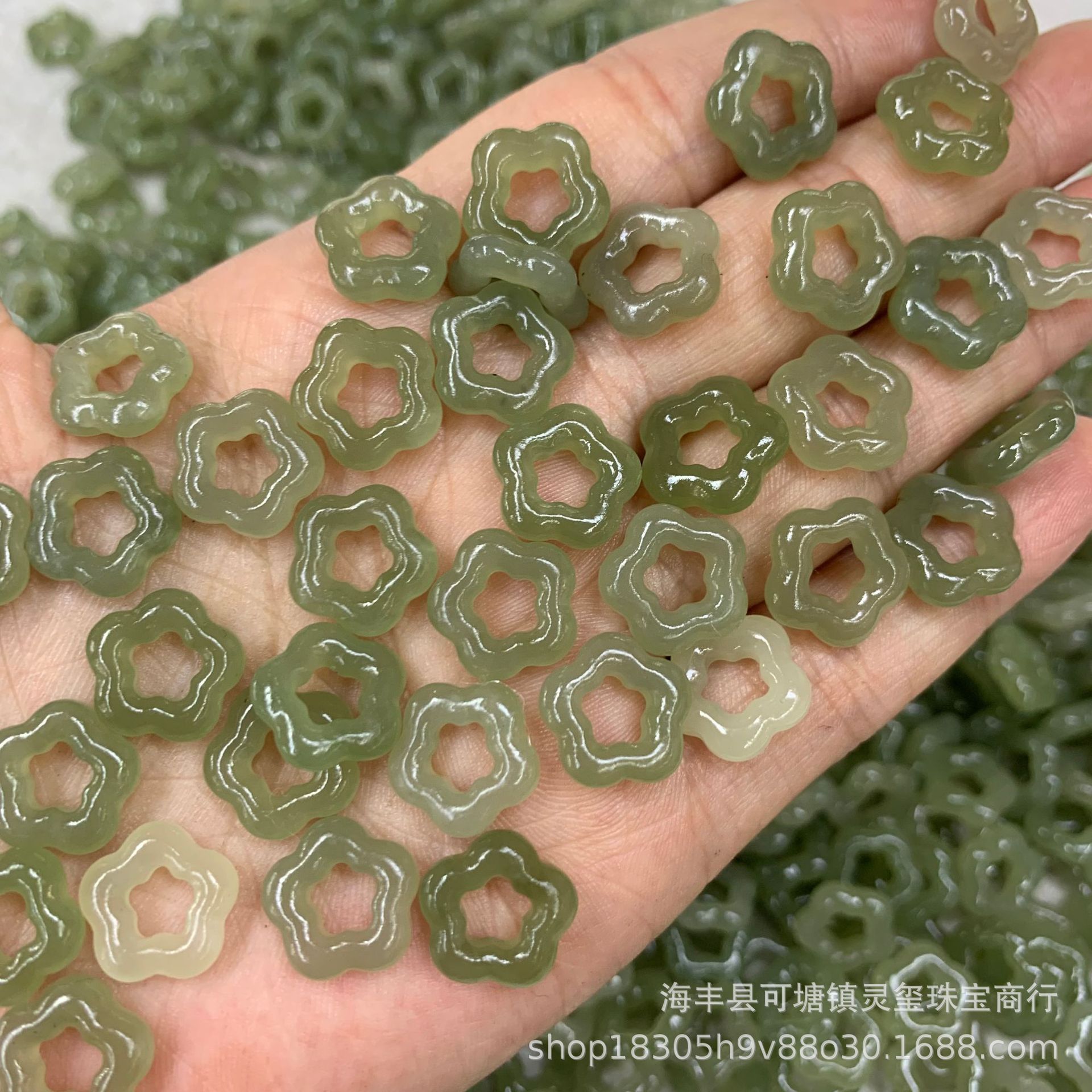 和田玉青海材料ペンダント透かし彫り五角星diy部品散珠小提溜ペンダントチェーン玉卸売り