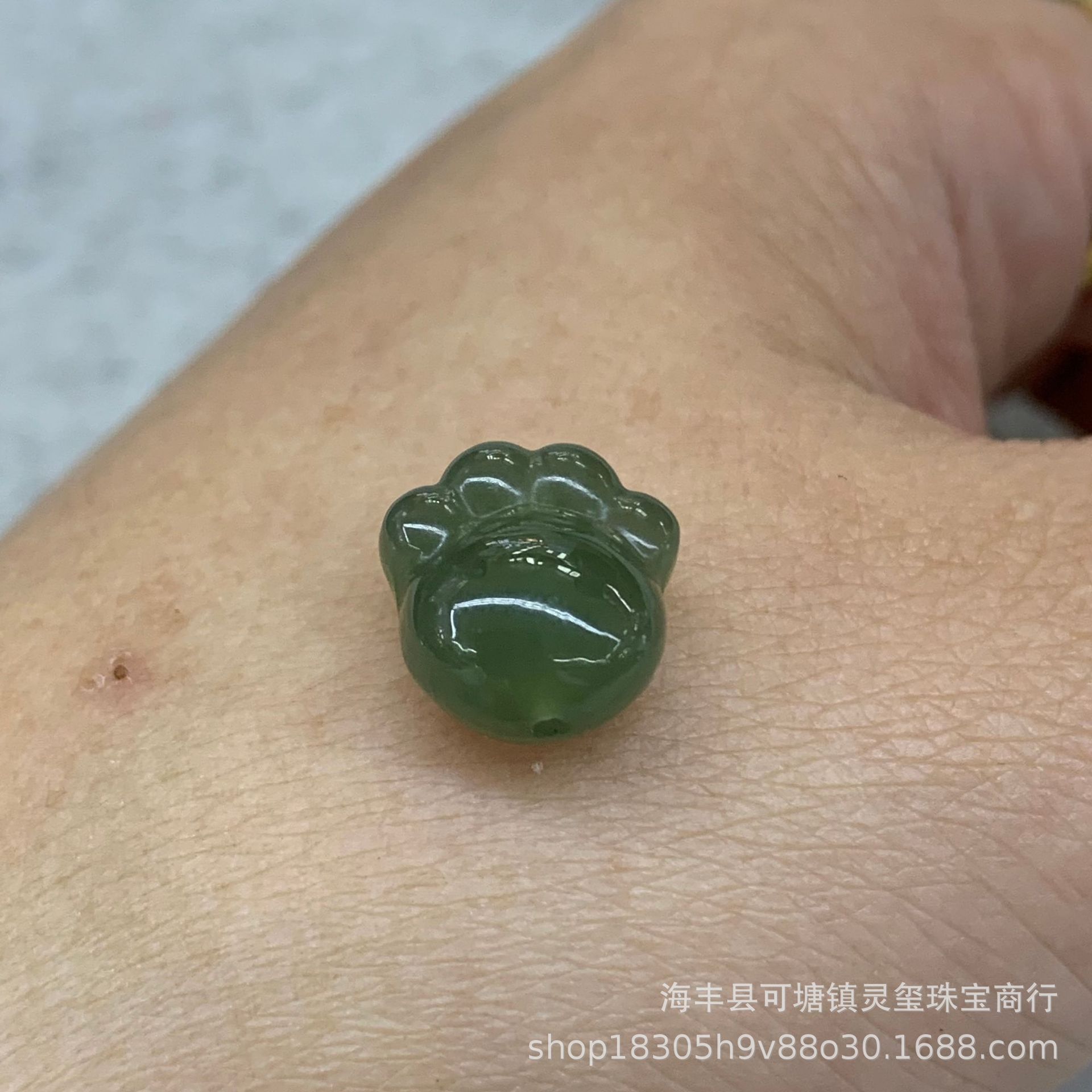 和田玉青海材料の猫爪上下穴手作りDIYアクセサリー