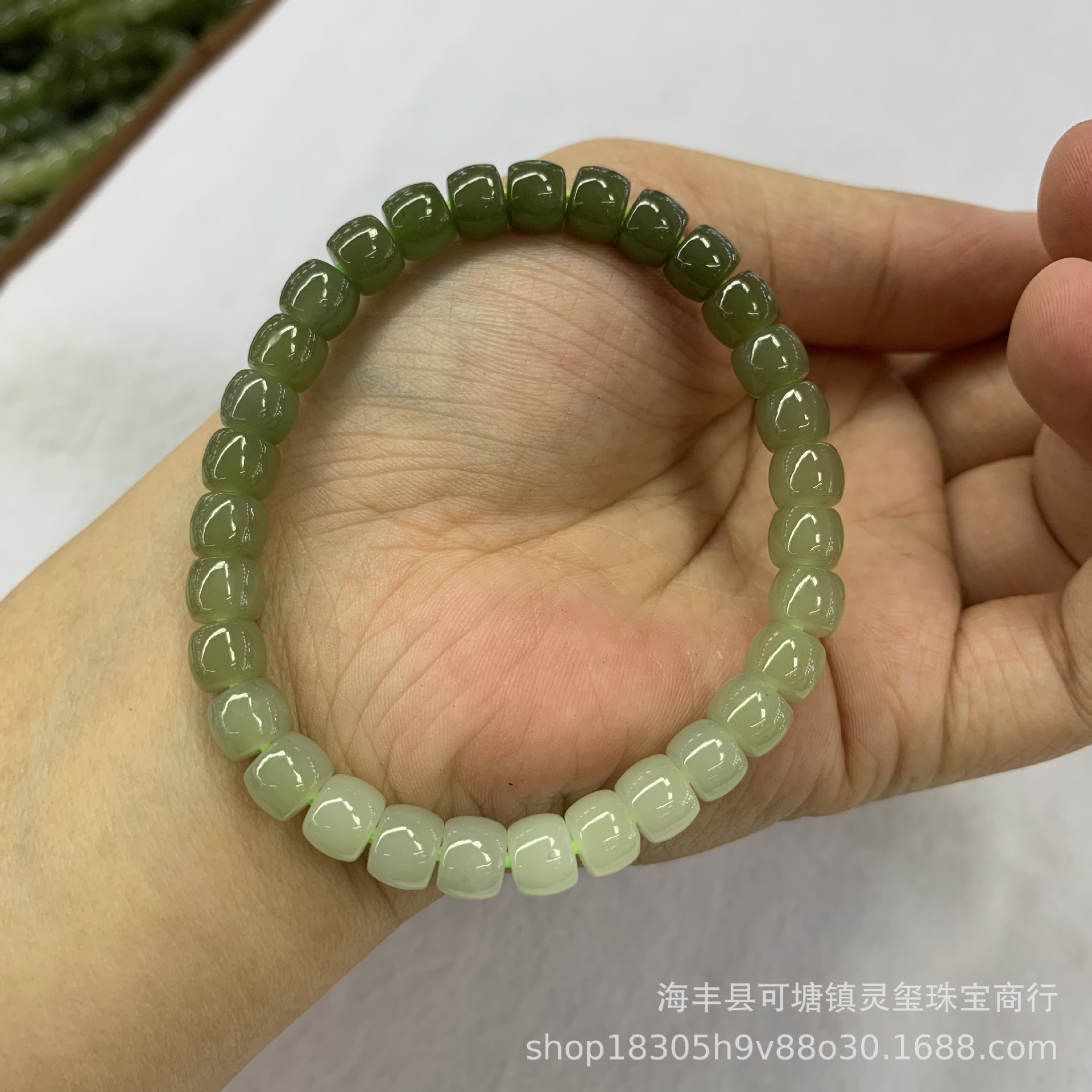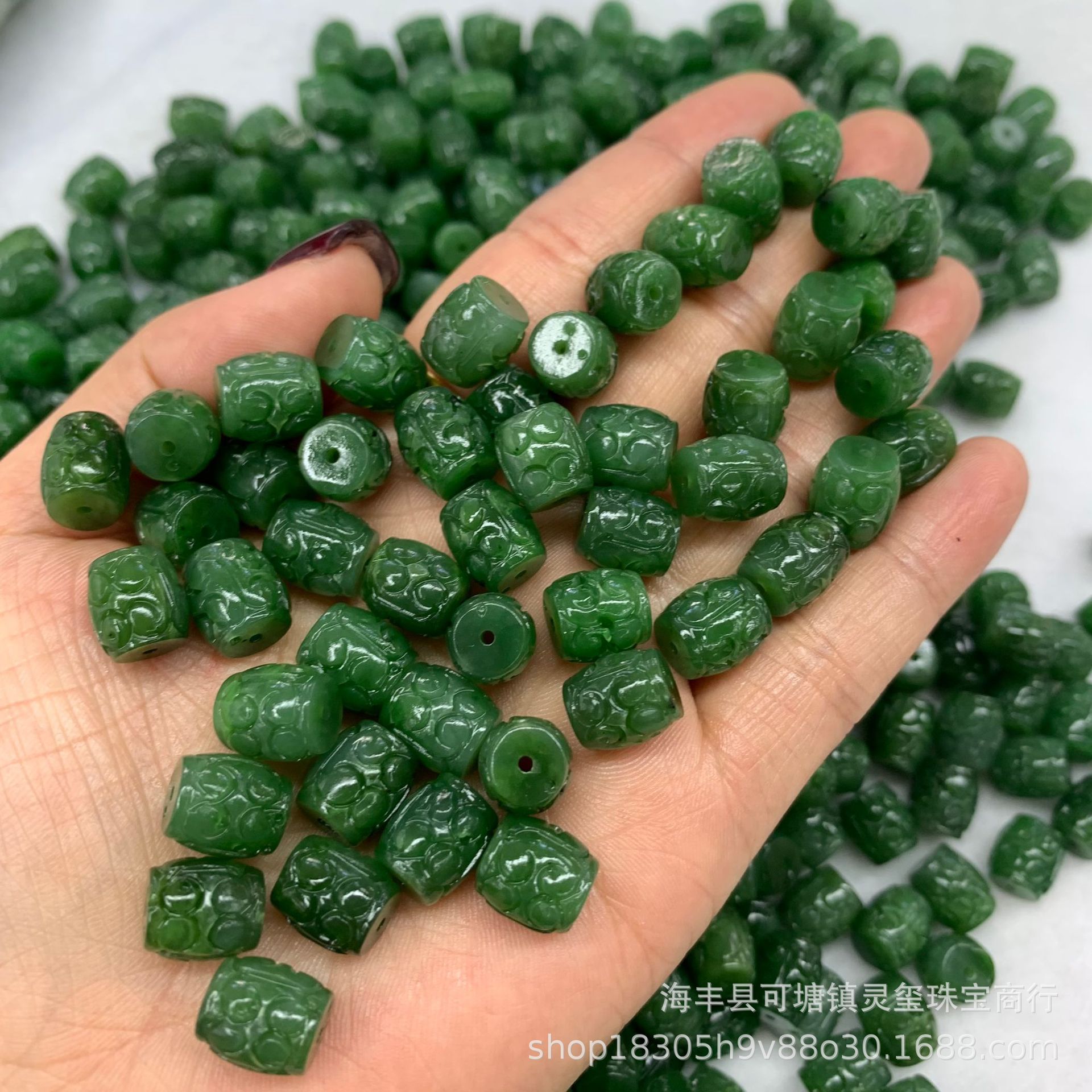 和田碧玉回紋桶珠直通穴手作りDIY部品小提溜ストラップ玉アクセサリー卸売り