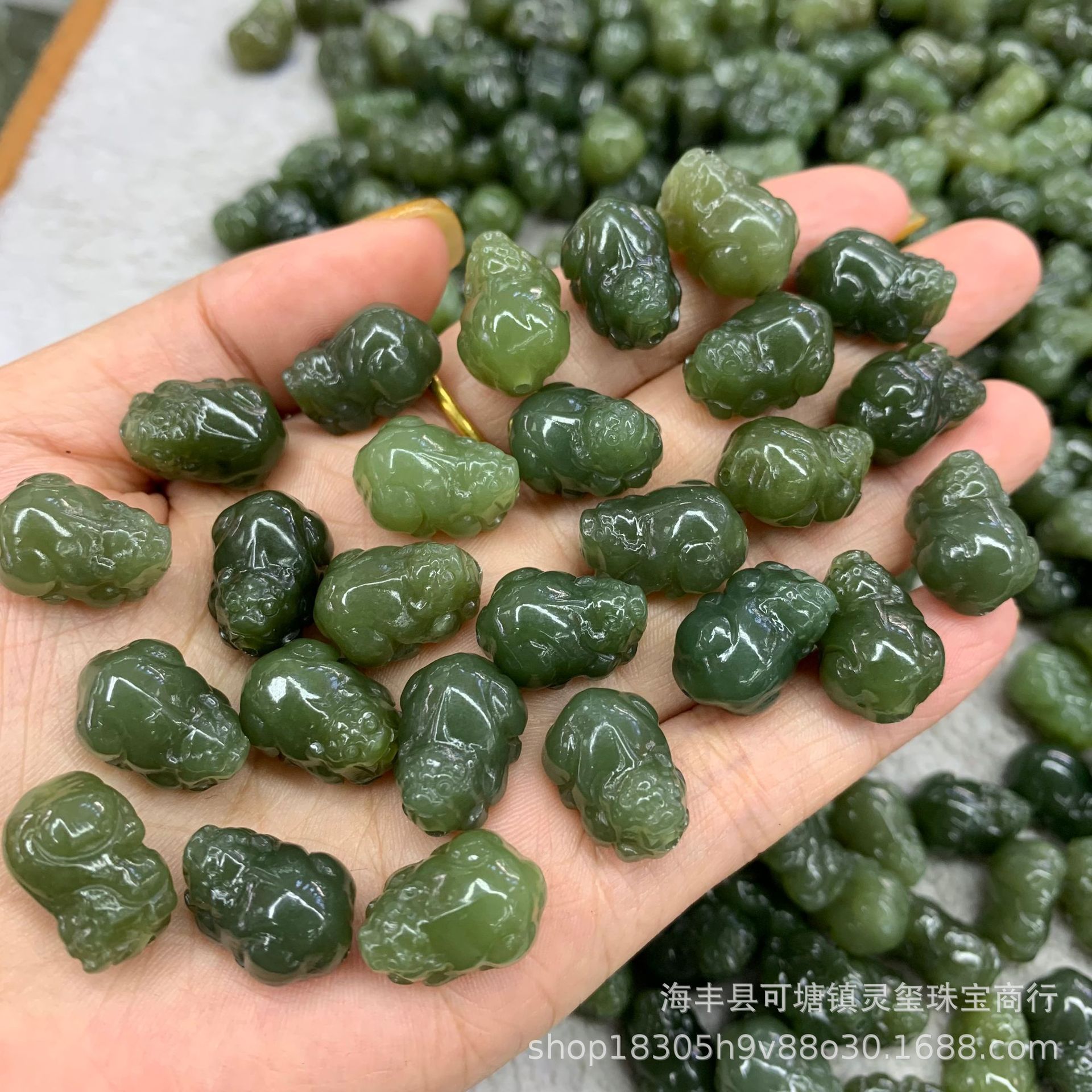 和田玉青海湖水緑三通仏珠チェーン手作りDIY部品小提溜ペンダント玉アクセサリー卸売り