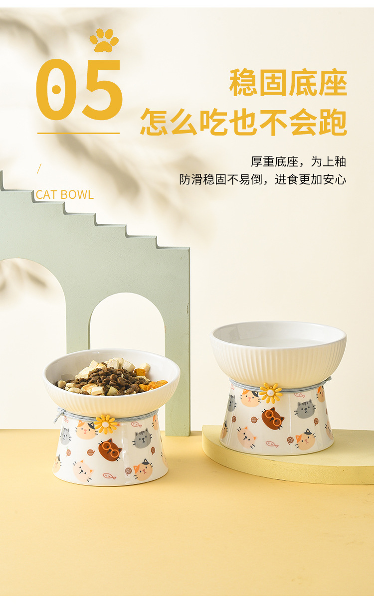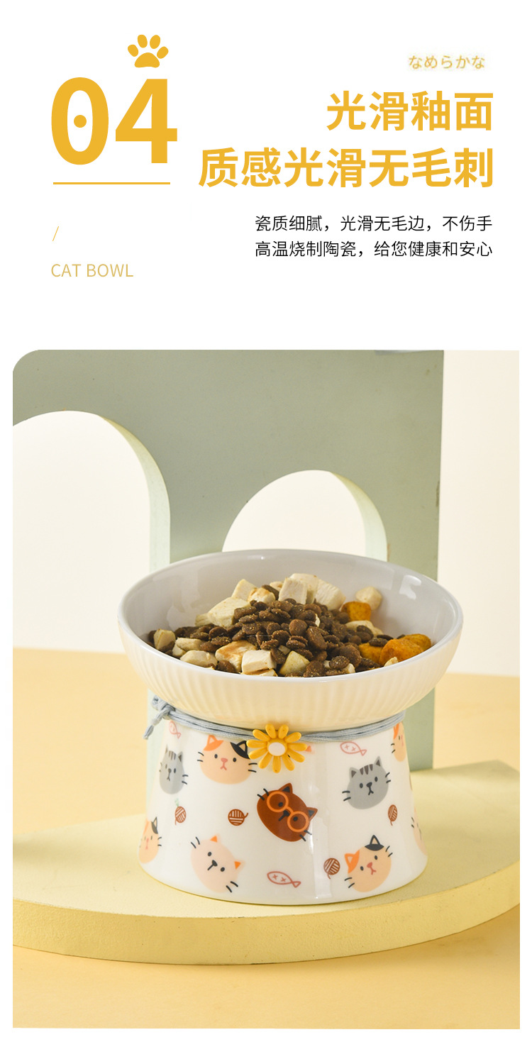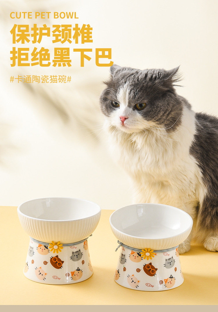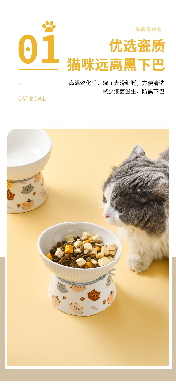 增高猫碗陶瓷猫食盆宠物喝水碗粮碗一体猫咪饭碗狗碗不易打翻护颈