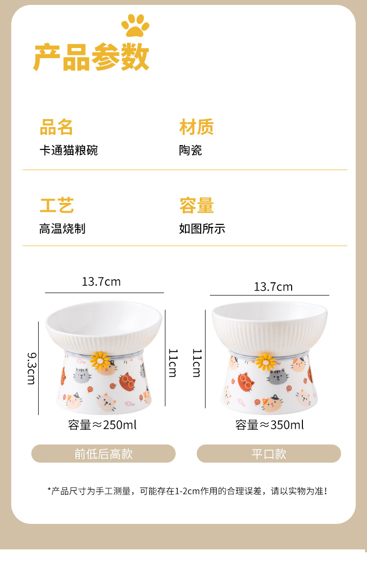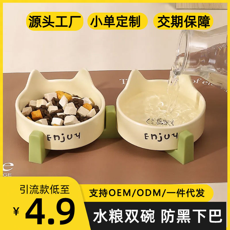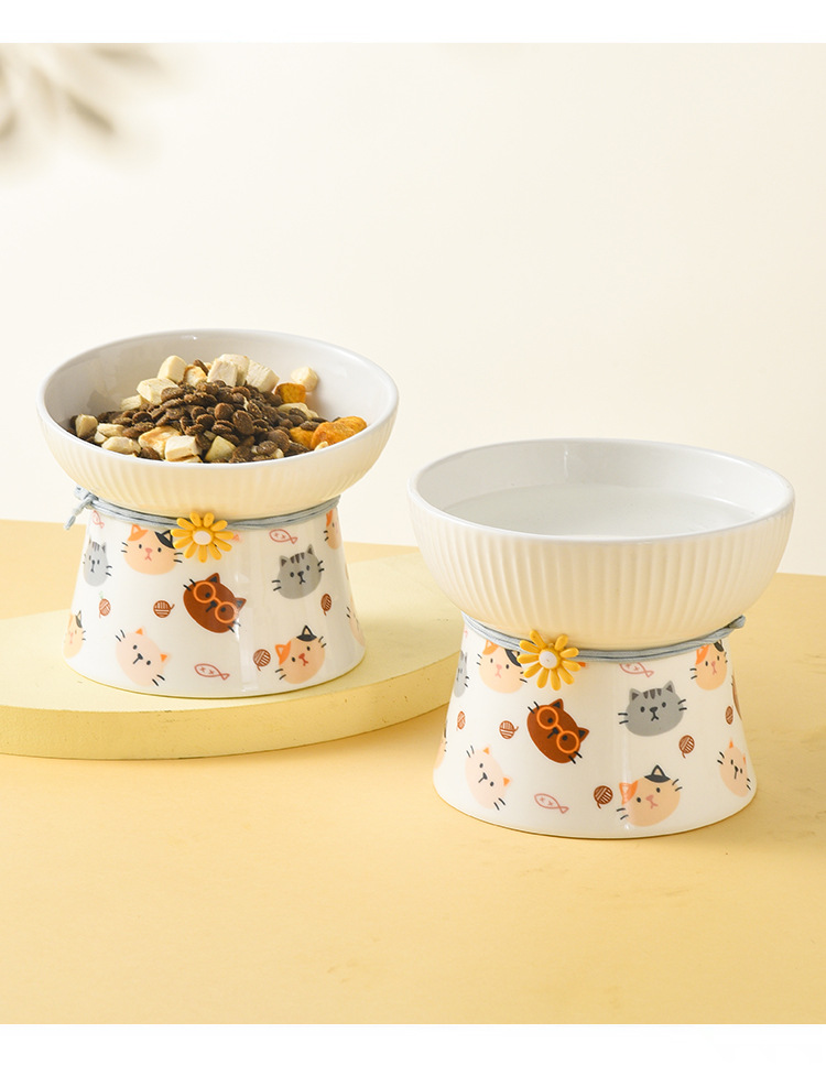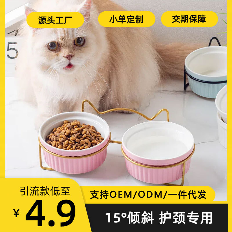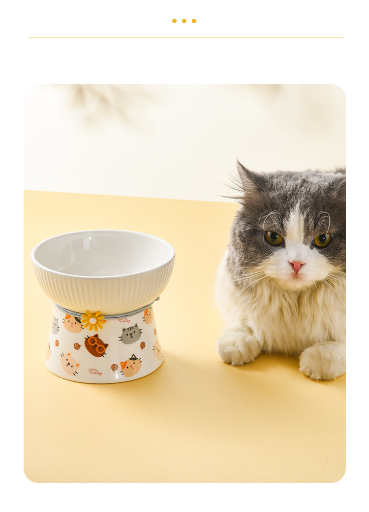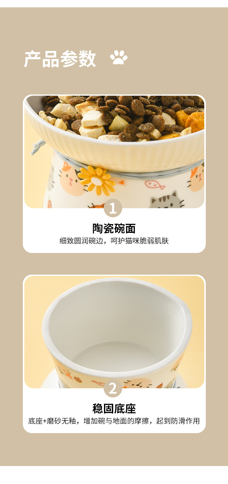 增高猫碗陶瓷猫食盆宠物喝水碗粮碗一体猫咪饭碗狗碗不易打翻护颈