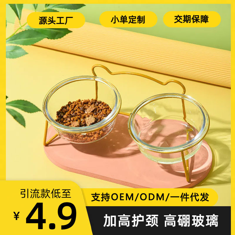 ペットの猫の碗のガラスの双碗は頚椎の固定の傾斜を保護します。