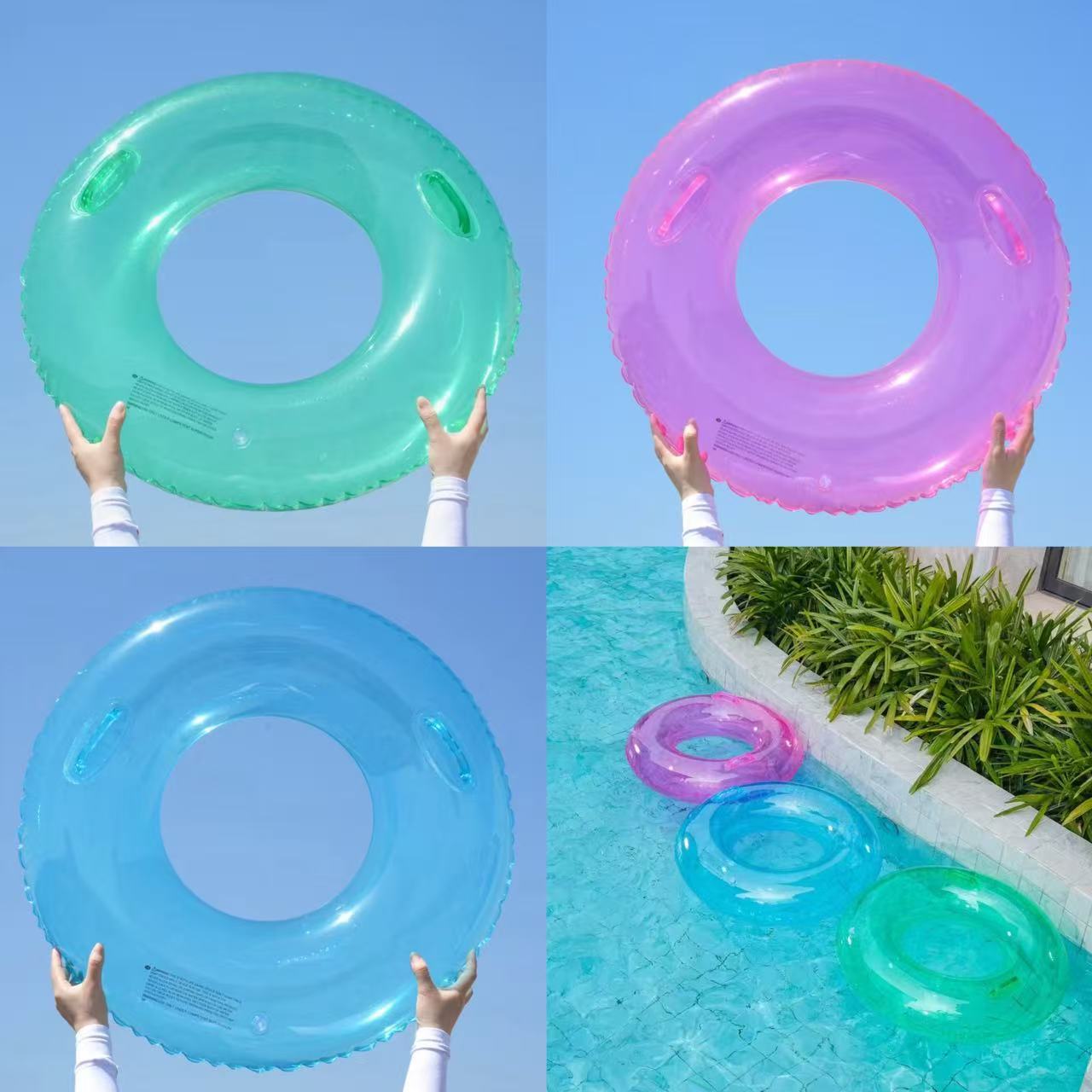 クロスボーダーins半透明純色浮き輪ハンドル付き浮き輪ネット赤成人男女腋窩PVC