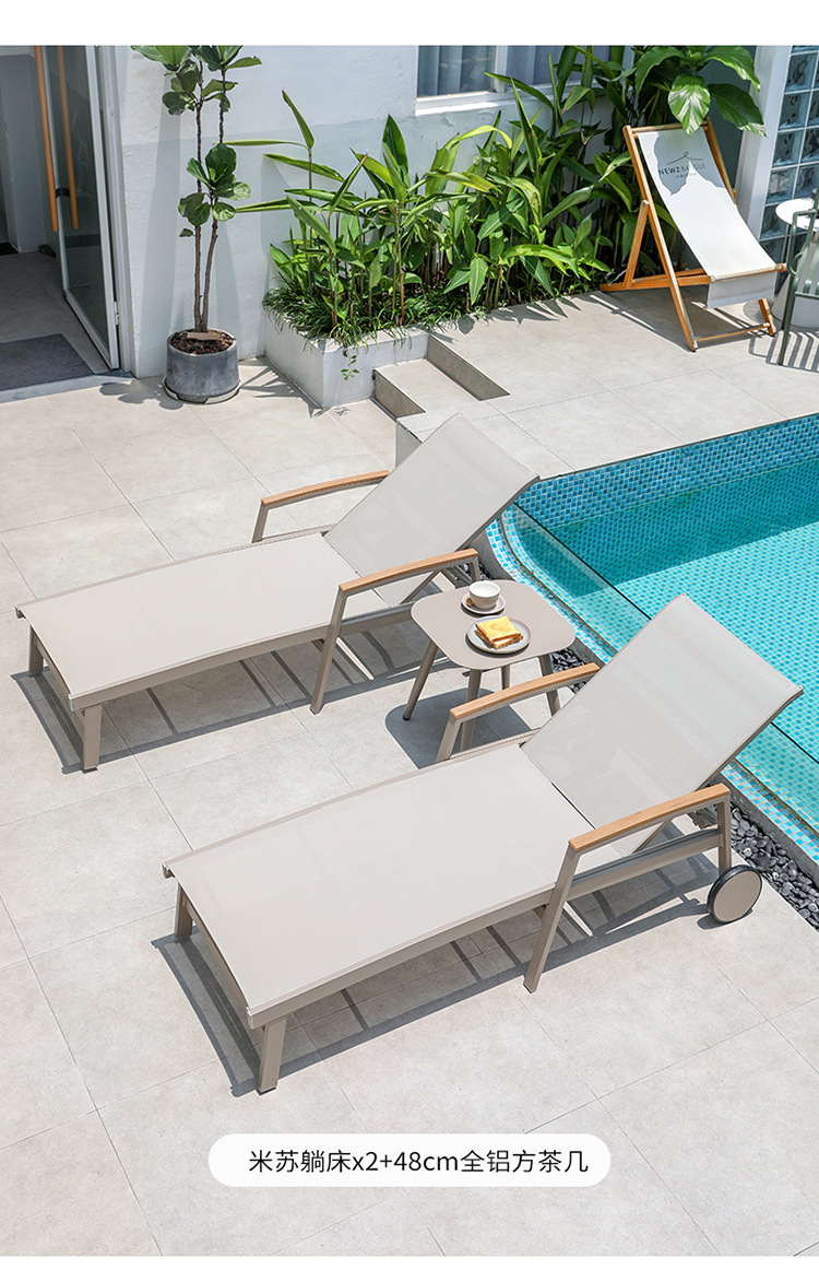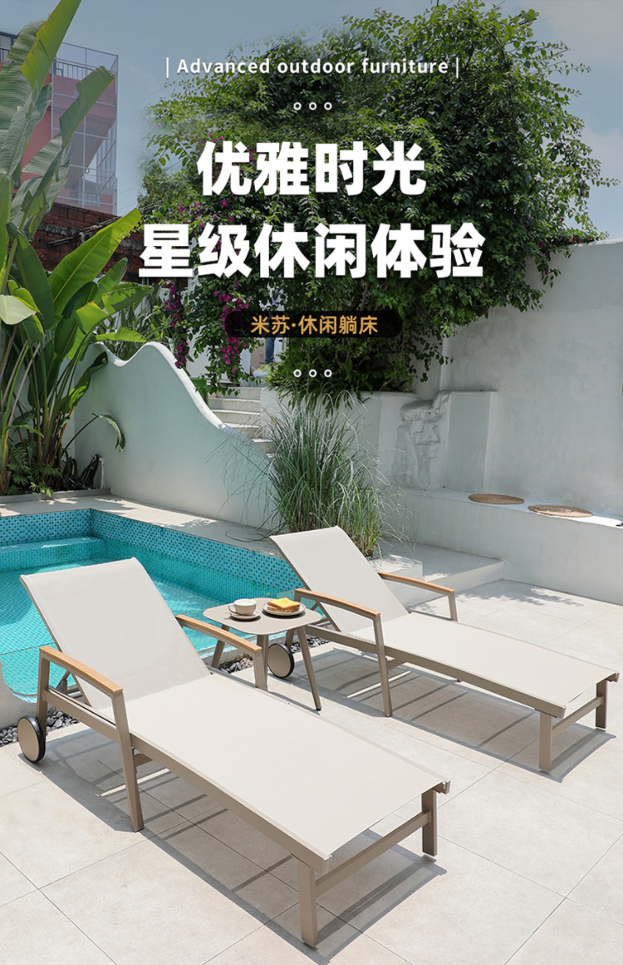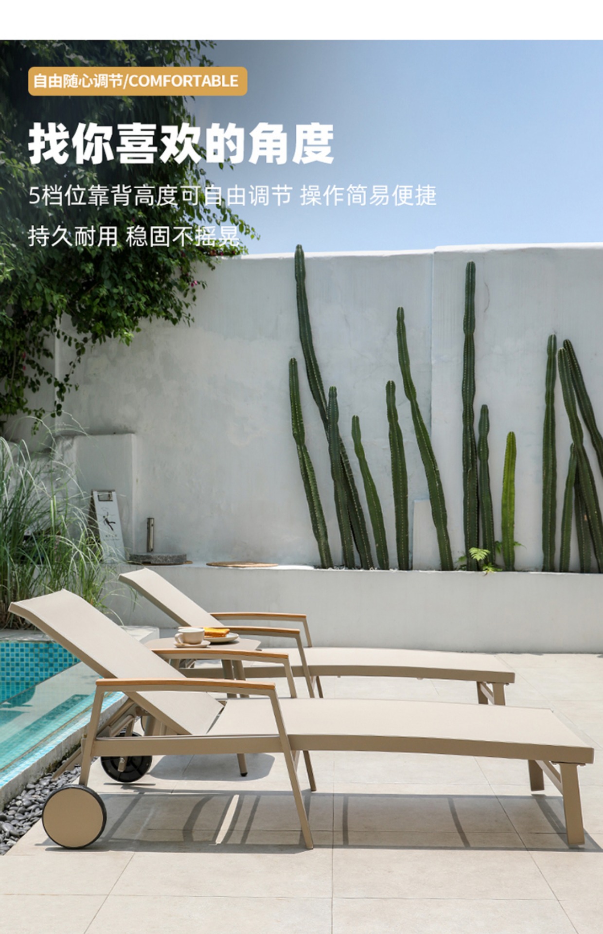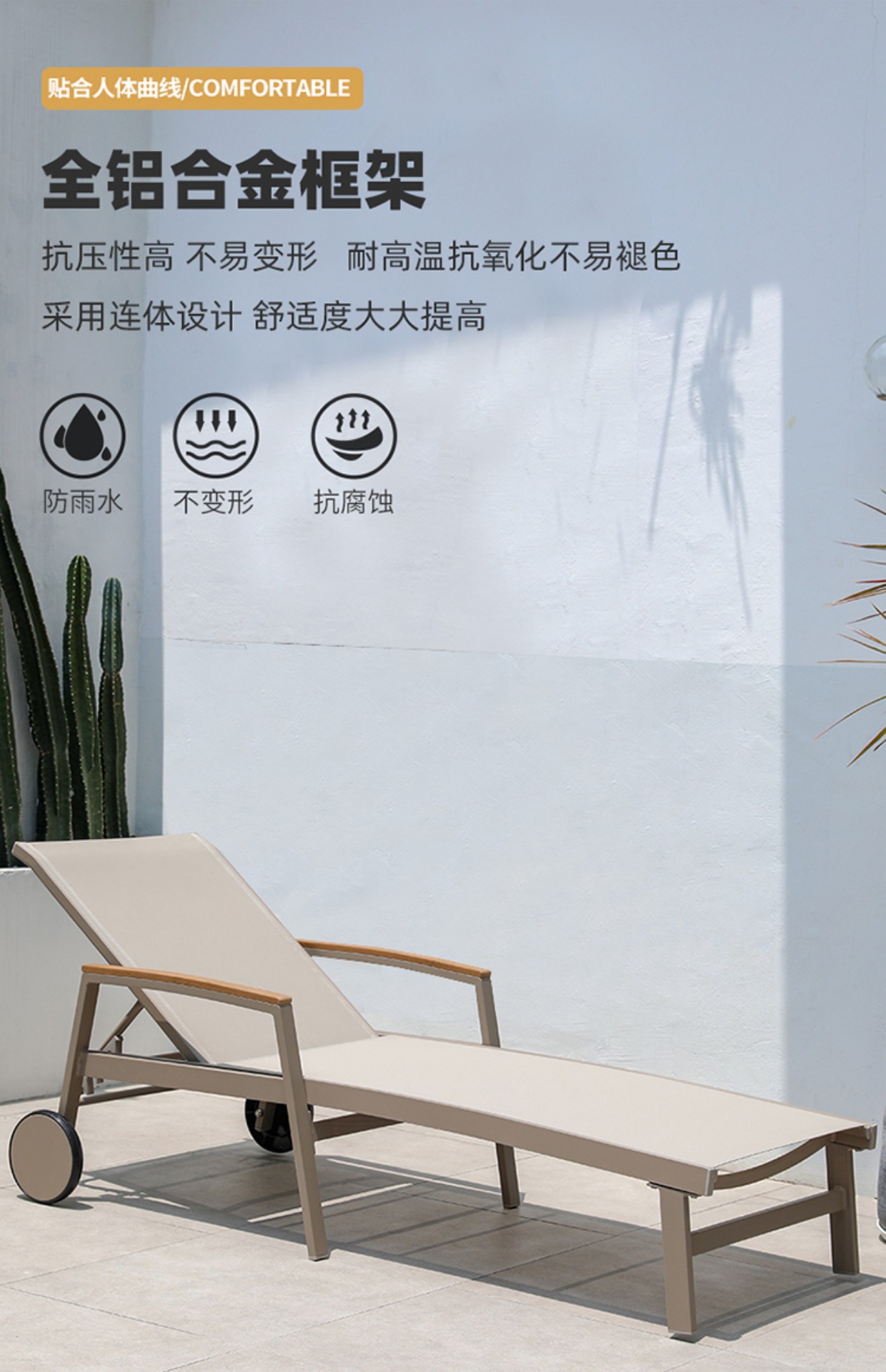 屋外ビーチベッド、ガーデン防水日焼け止め、レジャー休暇、民泊、屋外ホテル、海辺プール用リクライニングチェア