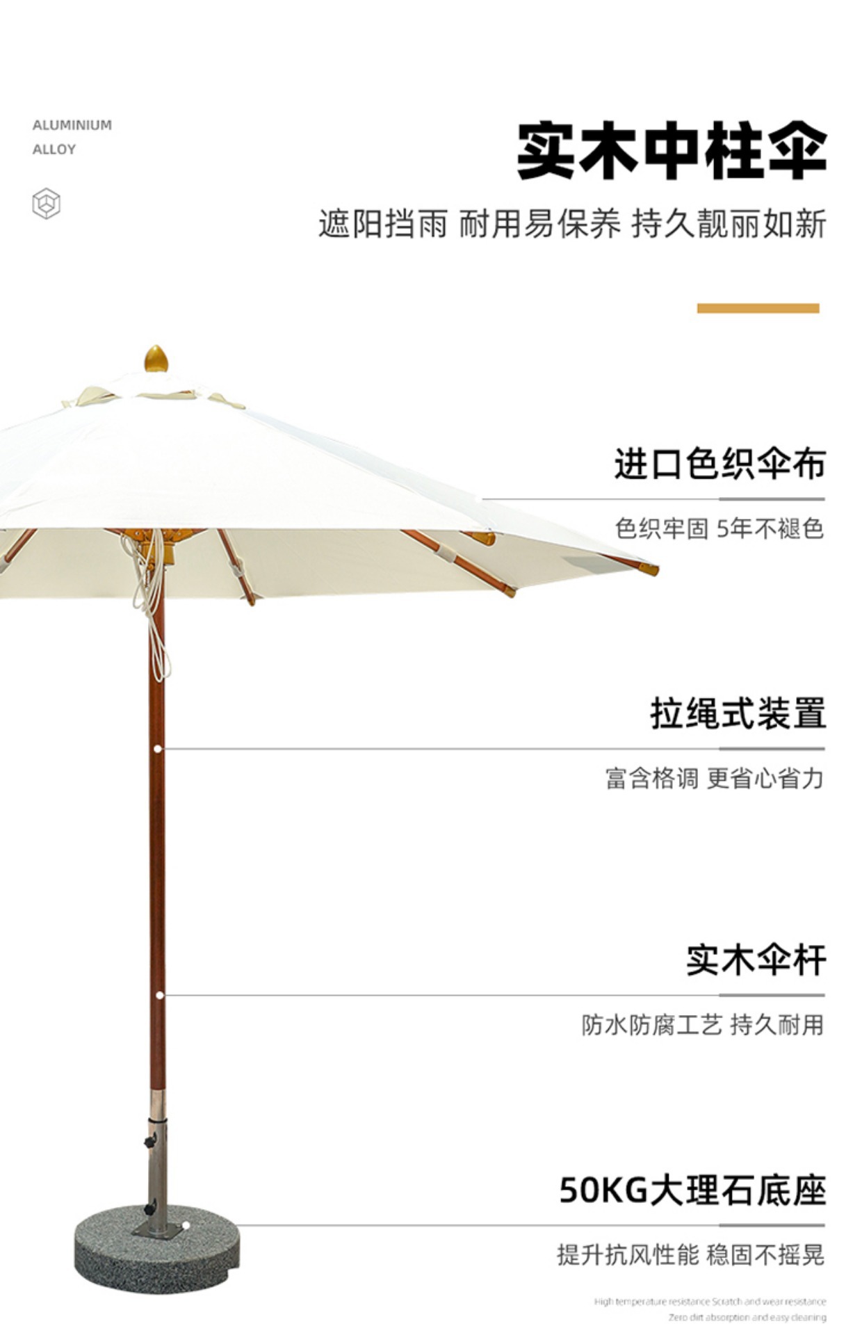 カラー ミスベッド,2.7メートル実木柱傘 + 50kg大理石ベース,3メートル実木柱傘 + 50kg大理石ベース,2.7 mアルミ合金ピラー + 30kg大理石ベース,3 mアルミ合金ピラー + 30kg大理石ベース