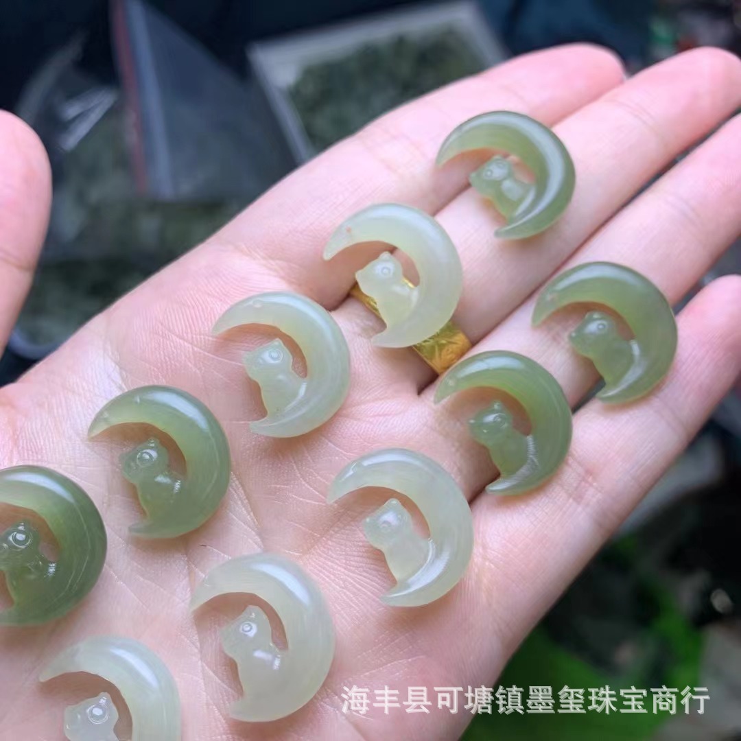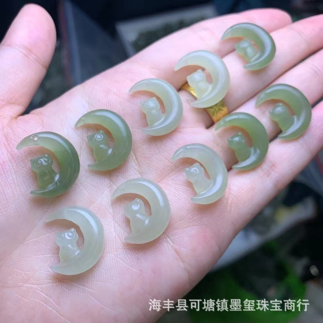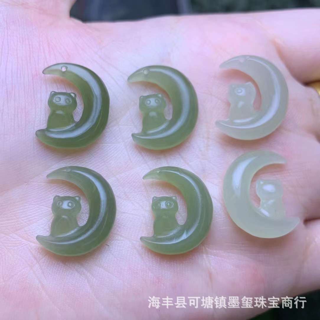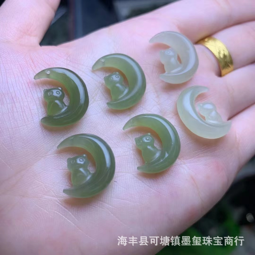 和田玉青海材料月猫ペンダント穴diyネックレスアクセサリー玉手串ブレスレットアクセサリー卸売り