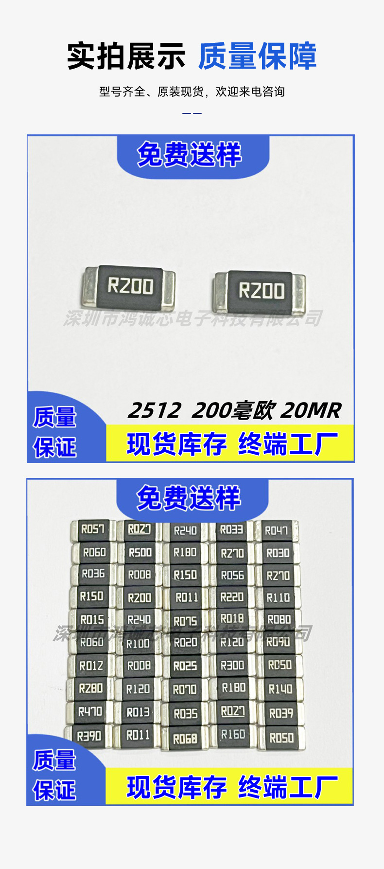 チップ合金抵抗1206 R001 R002 R003 R004 R005 1W 1% ハイパワーサンプリング