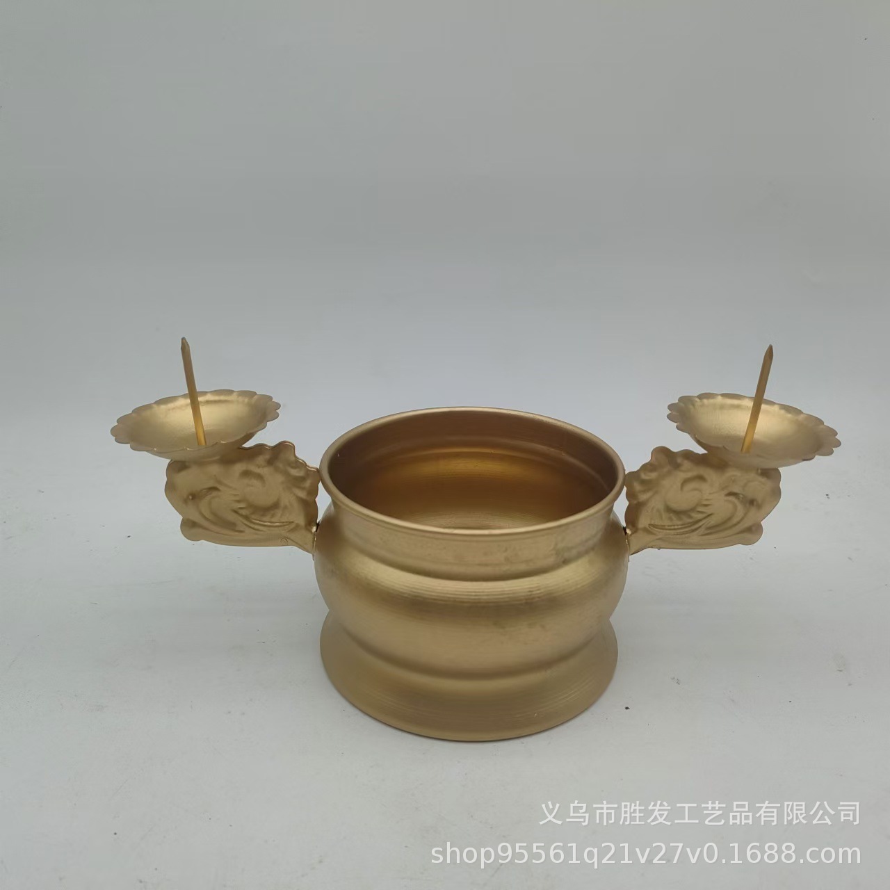工場直販 平底両用鉄製香炉・ろうそく立て 模造銅金メッキ三角香炉 家庭用仏具ろうそく立て香炉
