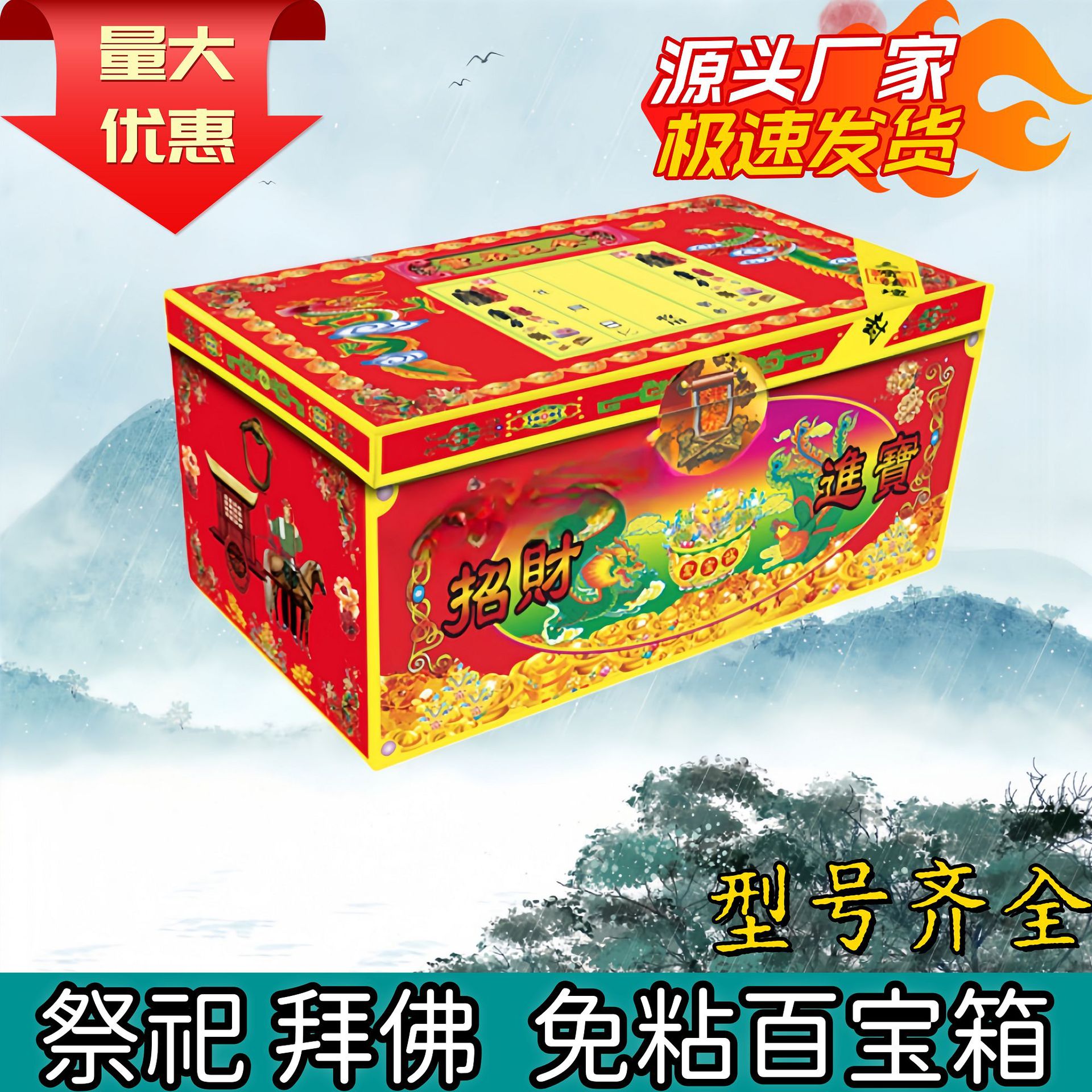 新创意衣箱用品纸活纸扎 百宝箱 折叠免粘成品 龙凤钱箱 拜祖纸品