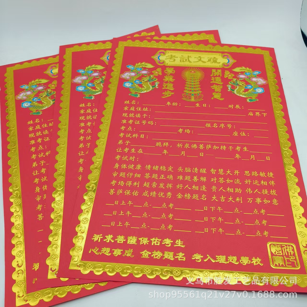 包邮烫金考试文疏金榜题名文昌42.5*30厘米大号红色表文昌考试
