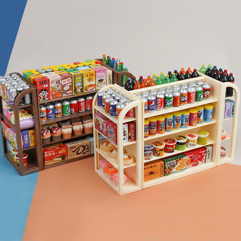 美しいミニ四面スーパースタンドのシミュレーション展示の小さい棚の子供の家の子供のままごとのおもちゃの模型の置物