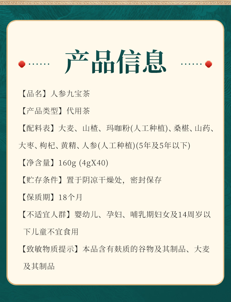 人参枸杞九宝茶男性滋补茶40包/盒批发滋补茶养生茶现货速发