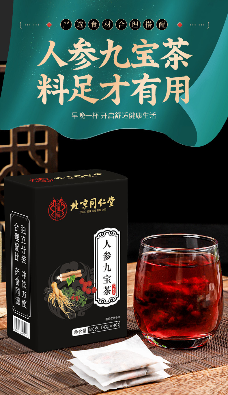 北京同仁堂 朕皇人参九宝茶 正規品卸売 ネットで話題の同型五宝茶 十宝茶 男性の健康維持