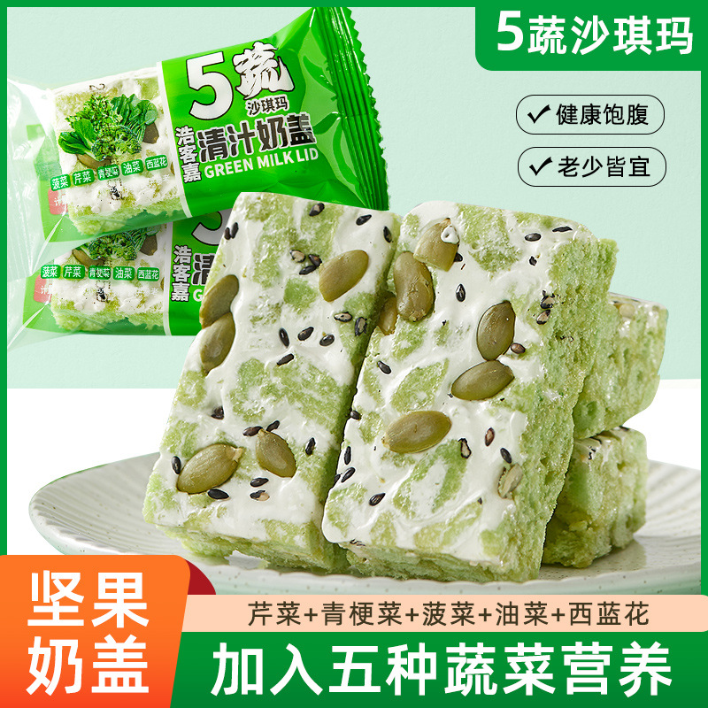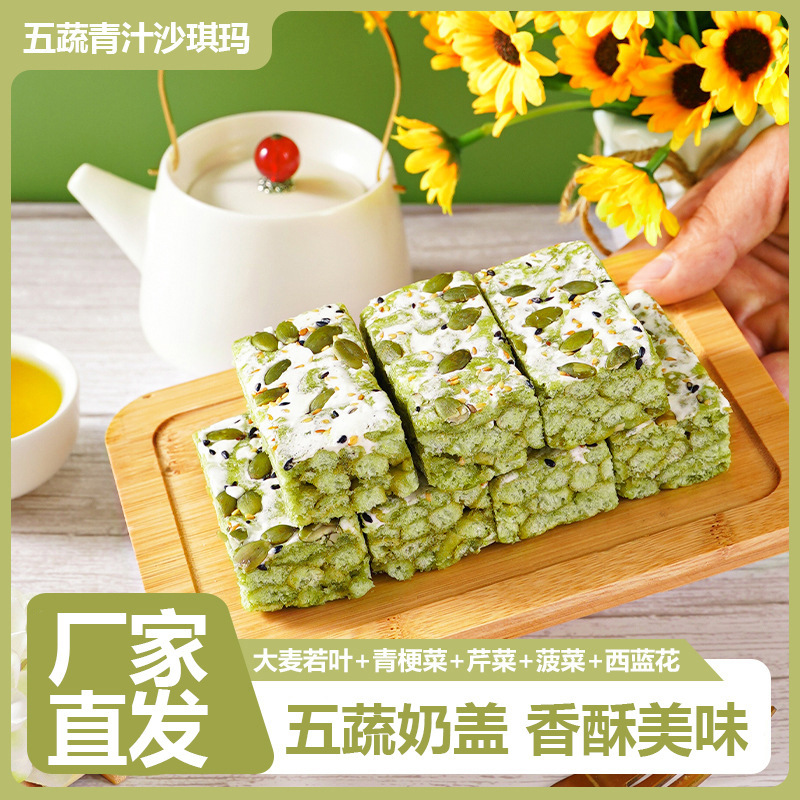 五蔬菜沙琪玛 轻食代餐伍蔬青汁奶盖沙琪玛蔬菜零食零售批发