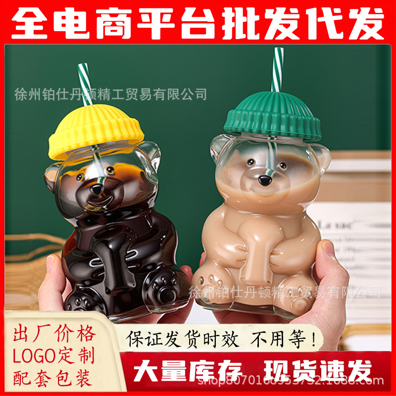 批发代发北美小熊吸管杯创意卡通玻璃杯子泰迪熊咖啡玻璃吸管杯