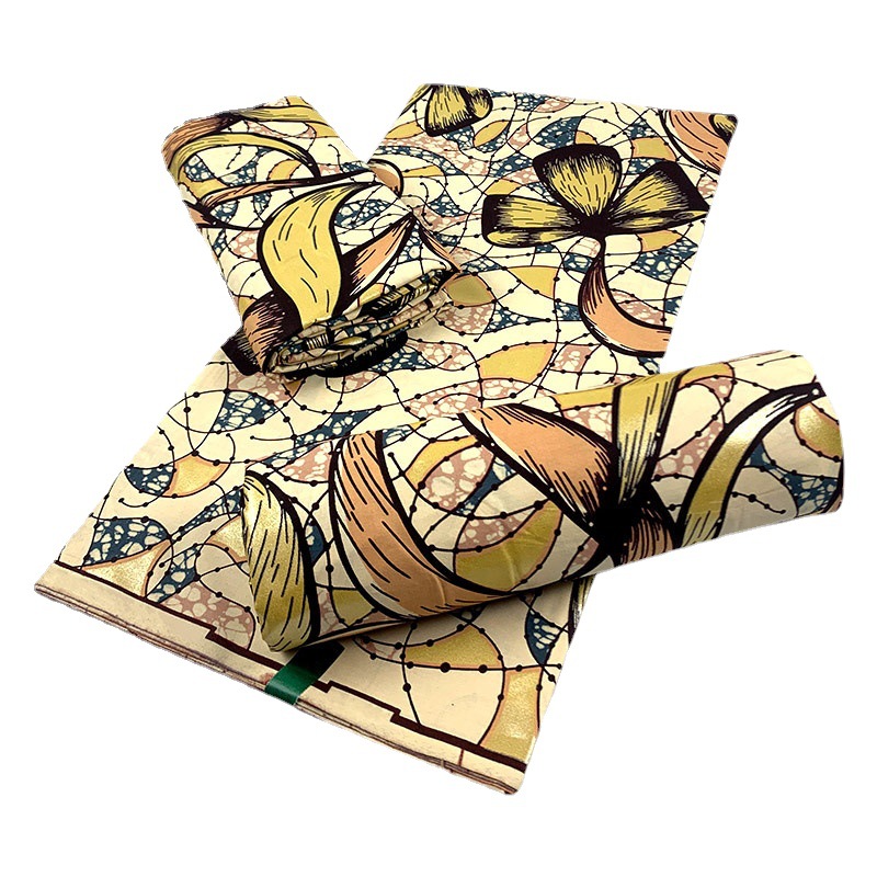 High quality 100% コットンゴールドwax高級綿の金箔の布は手触りが柔らかいです。
