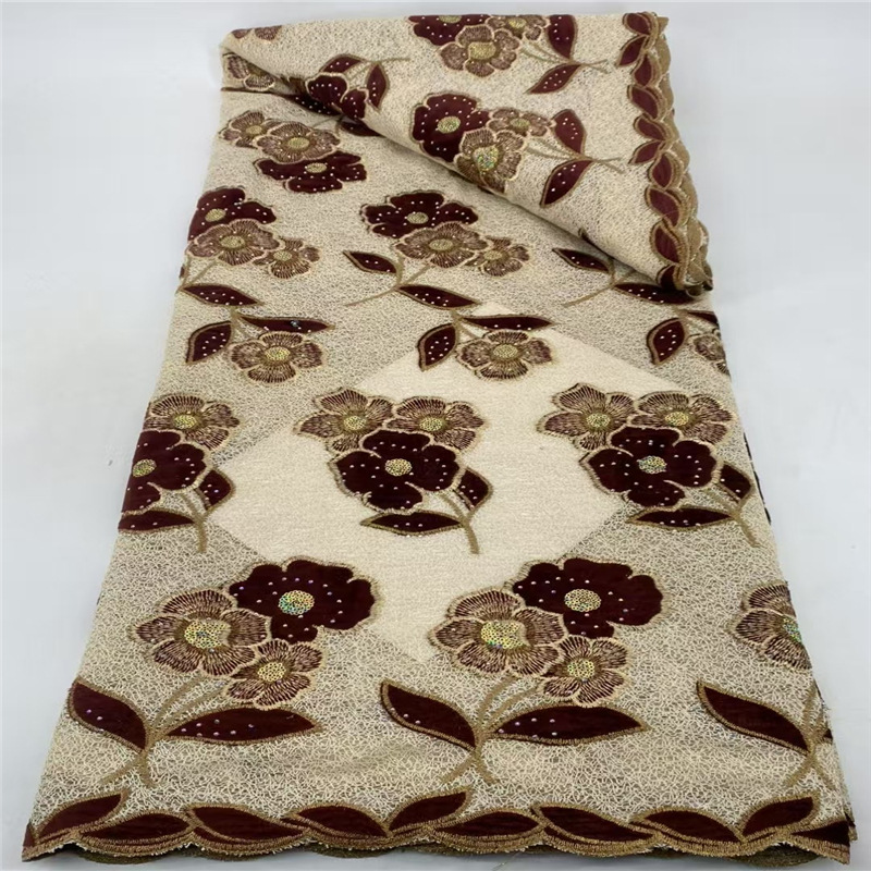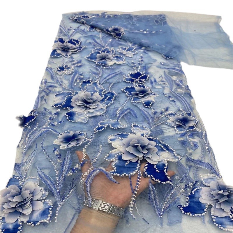 新しい大きな花ビーズチューブスパンコール刺繍メッシュ生地ウェディングドレスドレスレース生地フランスレース