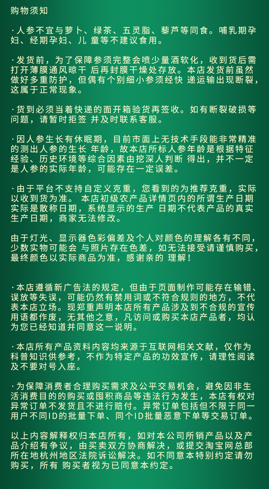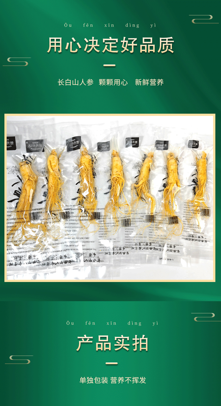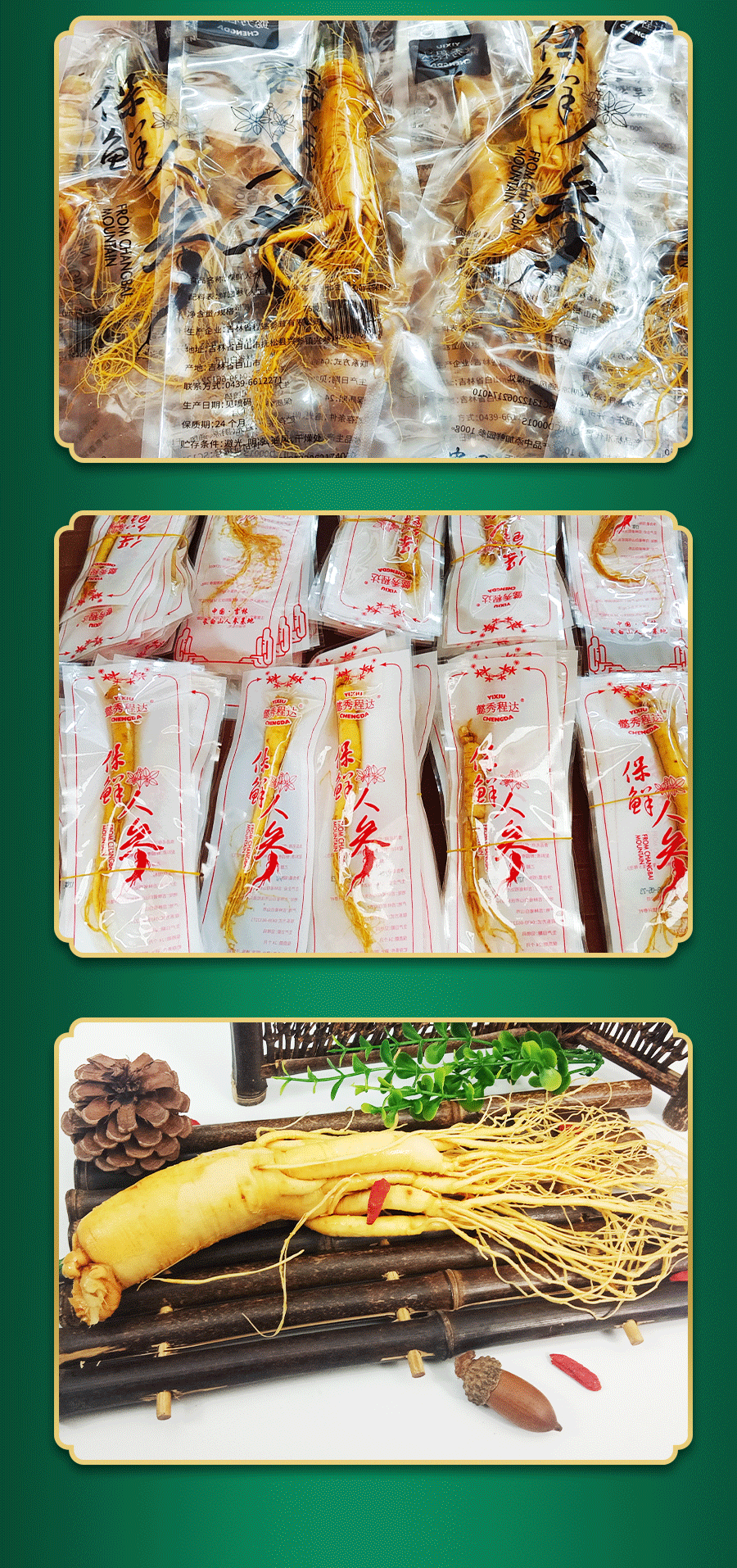 一颗人参毛重15-600克,全部现货 常年库存足,包装袋中有少量酒。我们有自己的人参种植合作社,真真正正自产自销,产地直发,承接各规格定制,生产速度快。