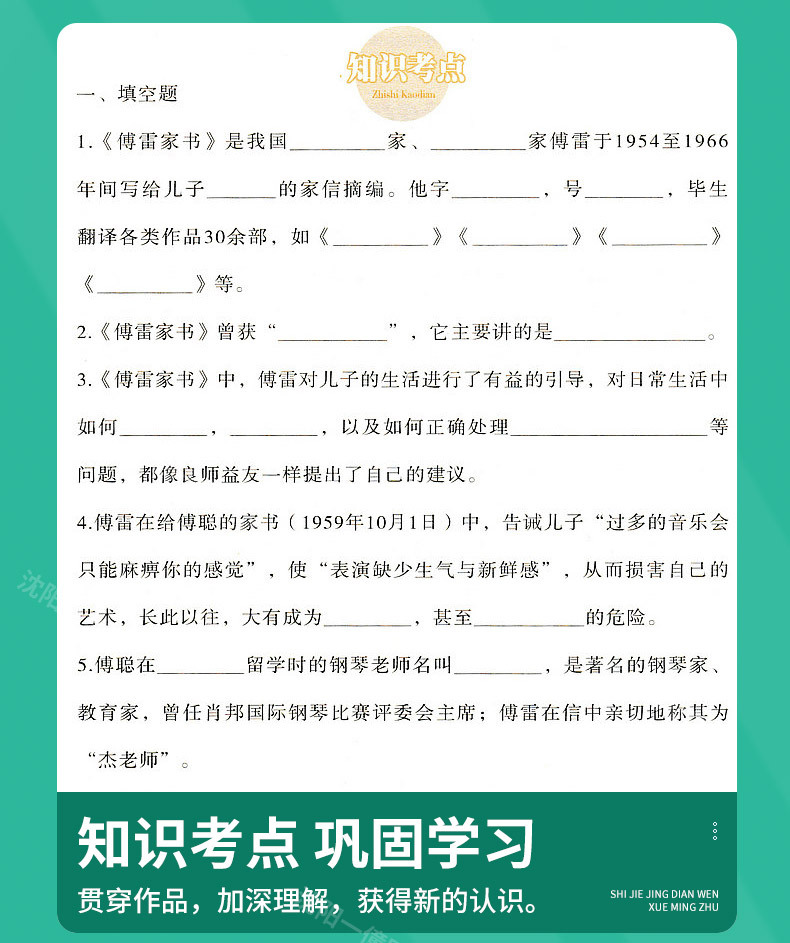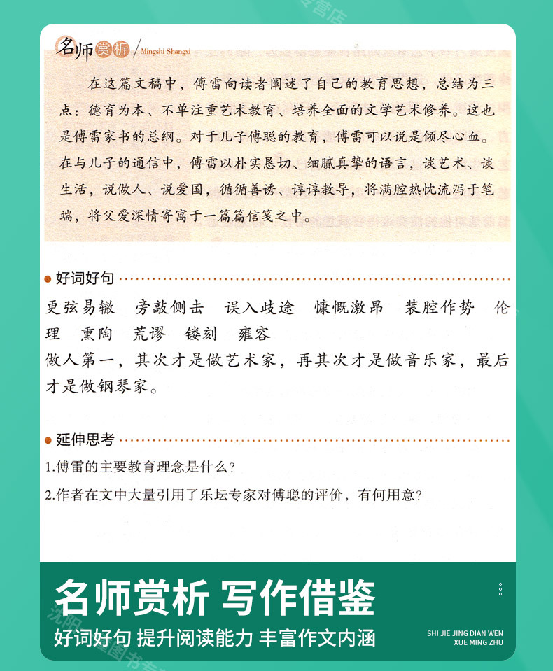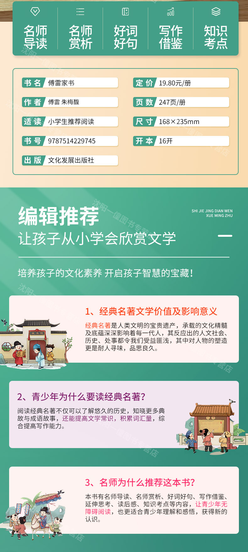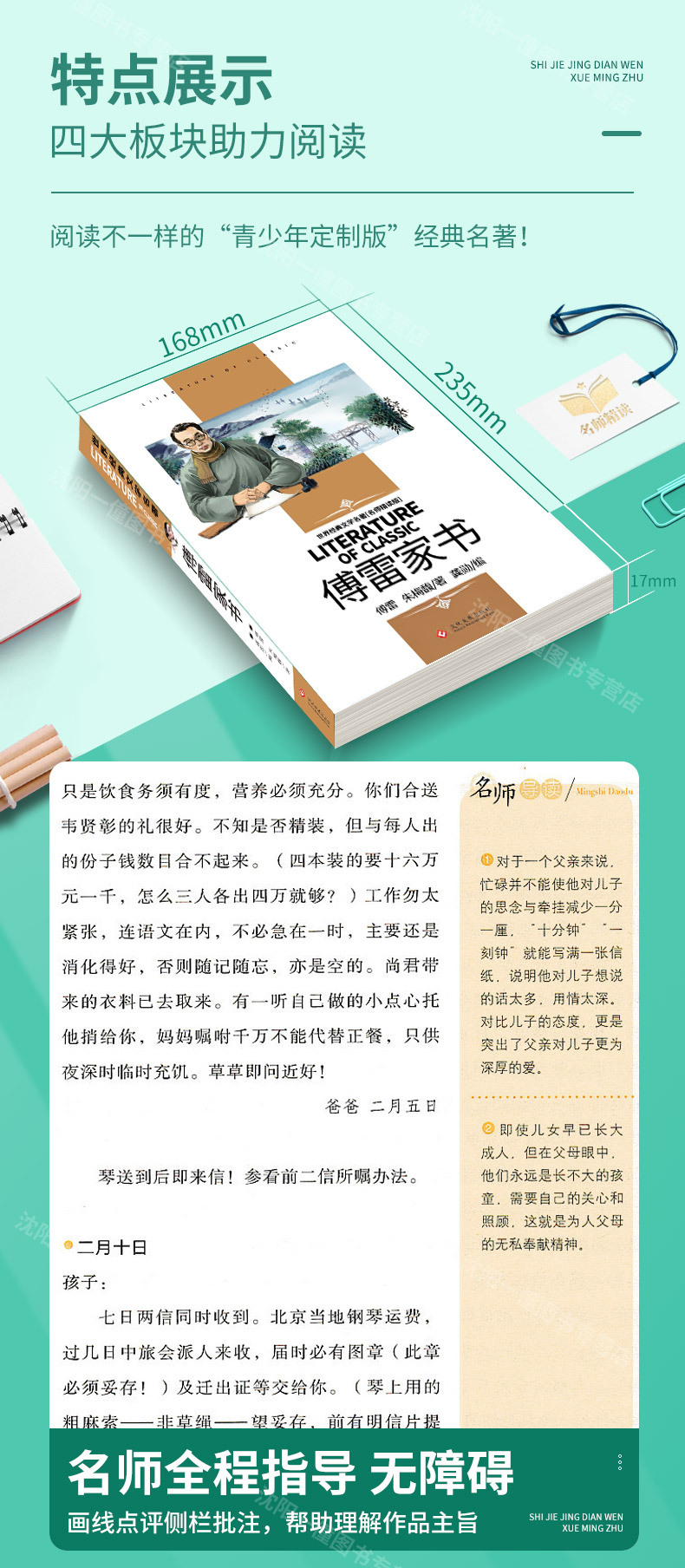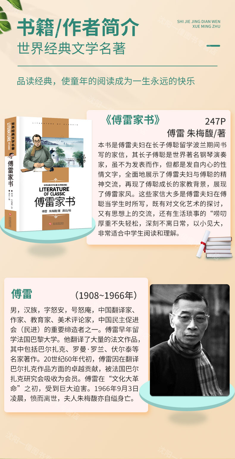 傅雷家書正版8年生下巻課外書中学生が本の世界経典文学名を読む