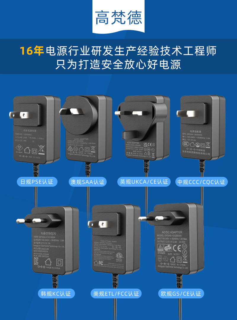 跨境ETL美12v1.5a电源适配器 3C中KC韩CE欧GS澳SAA认证5V3A适配器