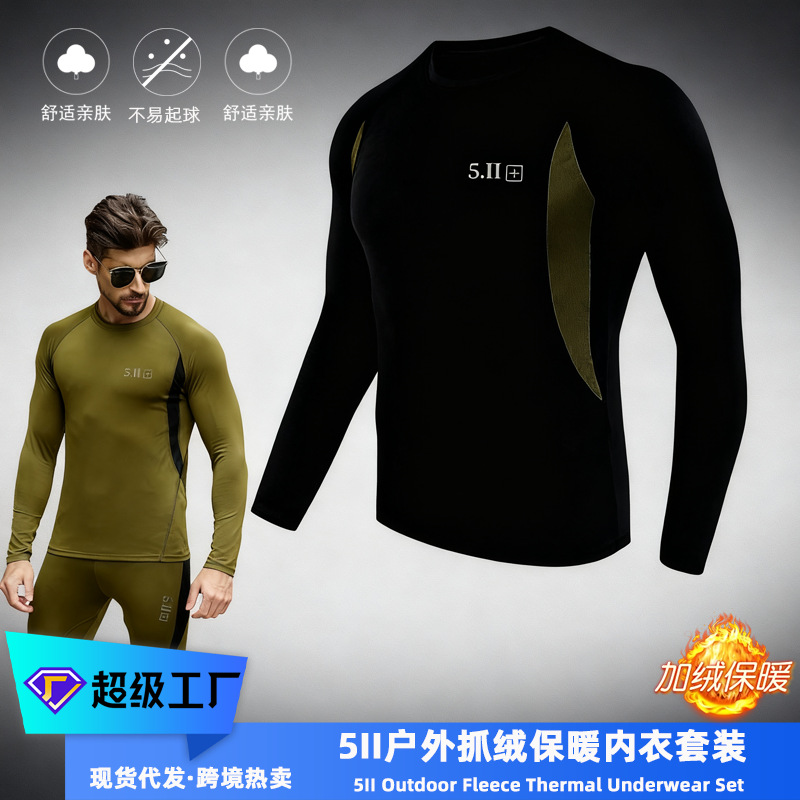 新款5II战术户外暖绒紧身运动内衣套装抓绒健身运动衣秋冬打底
