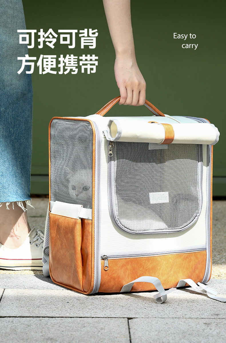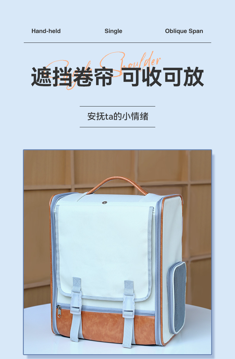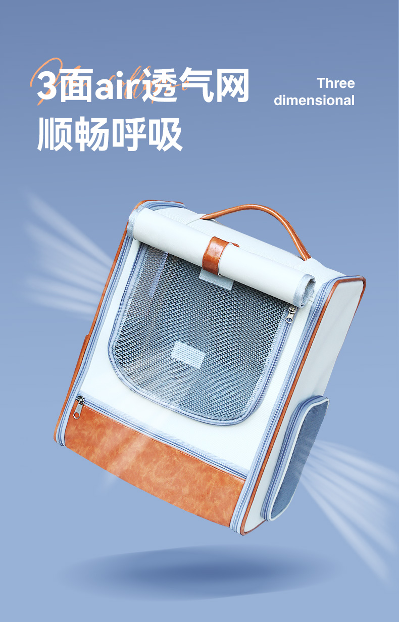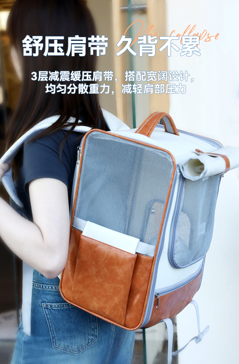【品名】:HOOPET宠物皮质双肩包(米棕色/蓝)