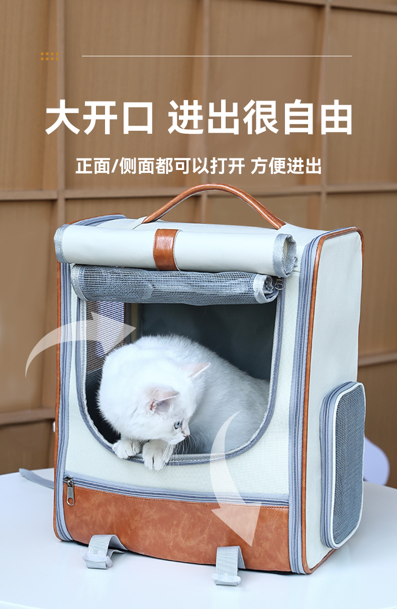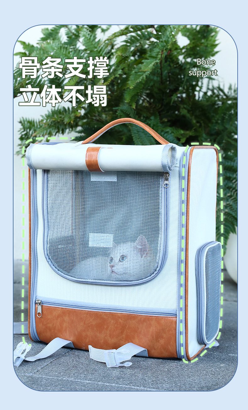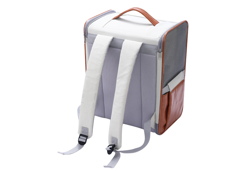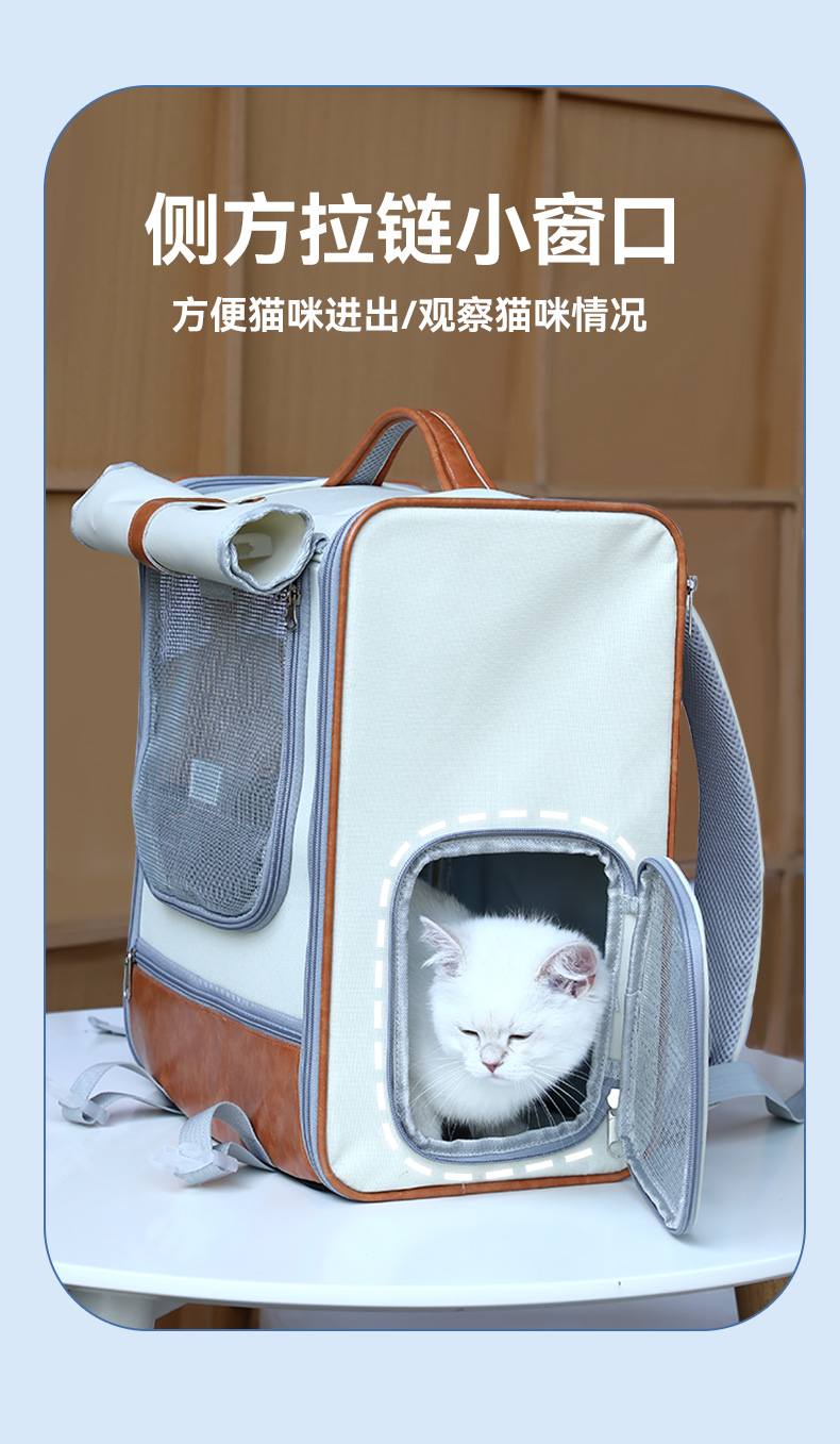 【品名】:HOOPET宠物皮质双肩包(米棕色/蓝)