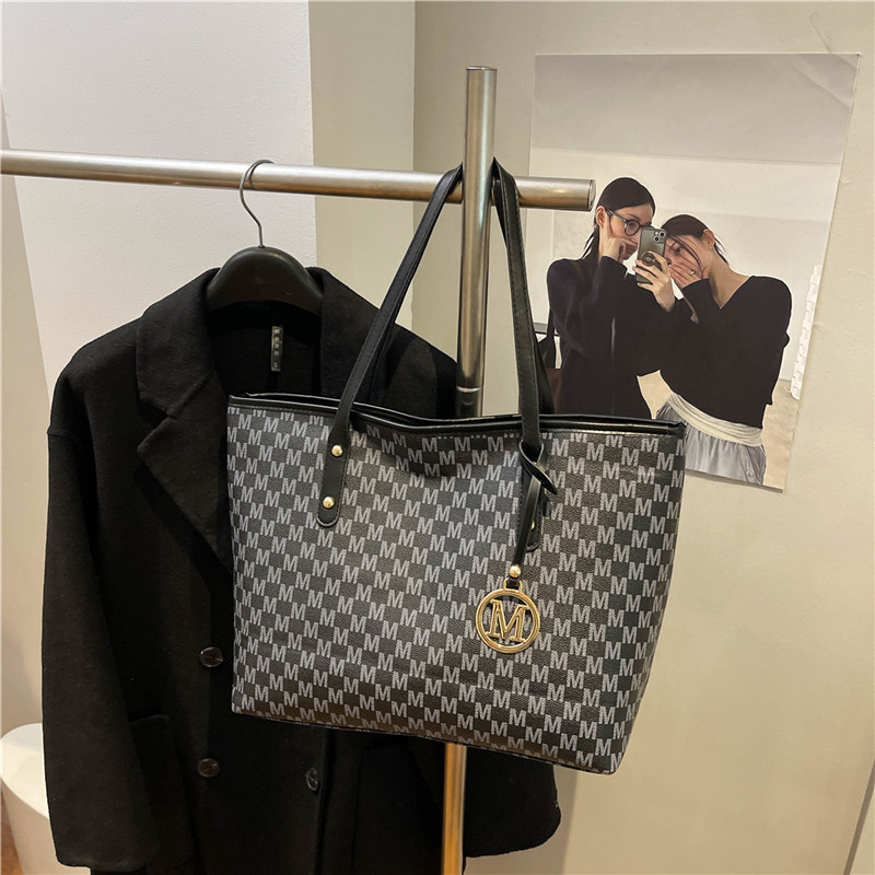 通勤托特包学生补习包袋2025新时尚字母撞色休闲简约大容量单肩包