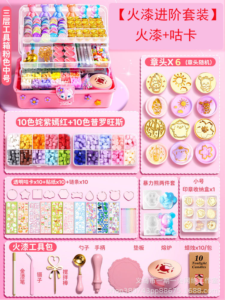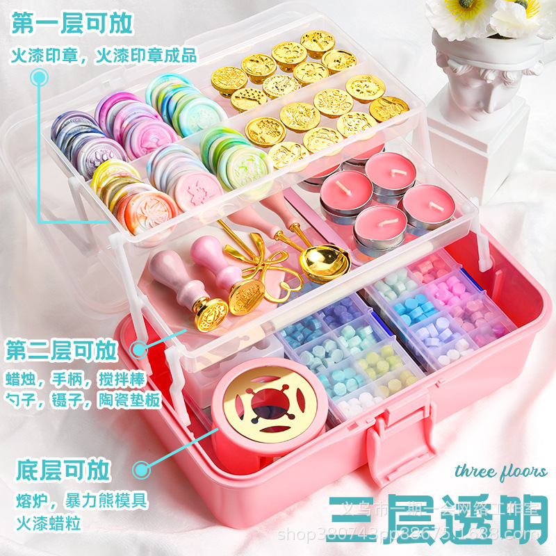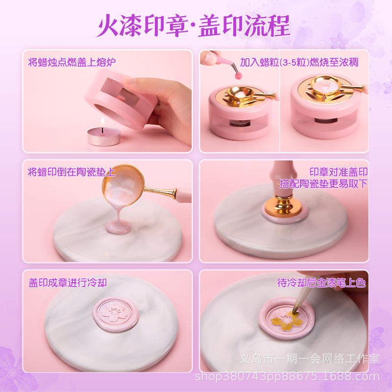火の漆の印鑑のフルセットのろうそくのワックスの粒の章の頭のカードの新米の火の漆の章の頭の収納箱の6月1日の子供の日のプレゼント