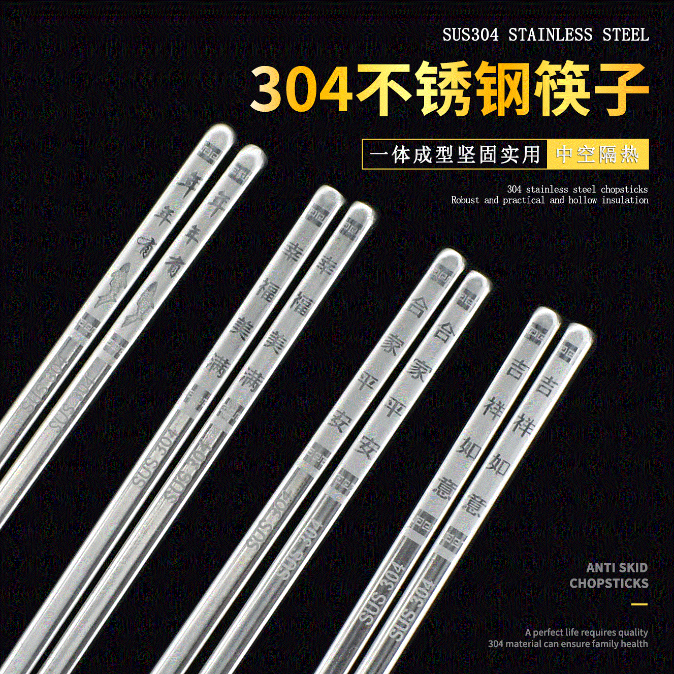 メーカー卸売り304ステンレス箸レーザー半角型滑り止めホテル家庭用箸カスタマイズ可能印刷lo