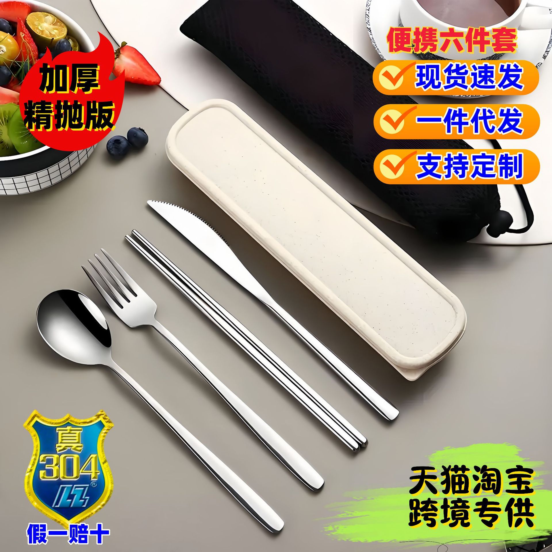 跨境专供便携餐具四件套不锈钢刀勺叉筷子学生户外旅行收纳套装