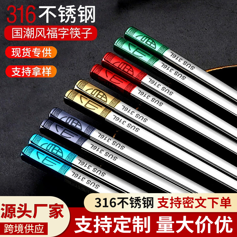 家庭用一人箸304ギフトボックスセット316ステンレス箸カラー福字耐高温滑り止め角型