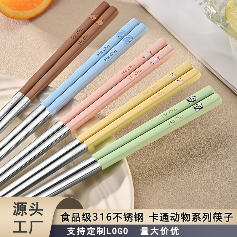 316食品級ステンレス箸家庭用304食器学生携帯高颜値アニメ動物箸屋外