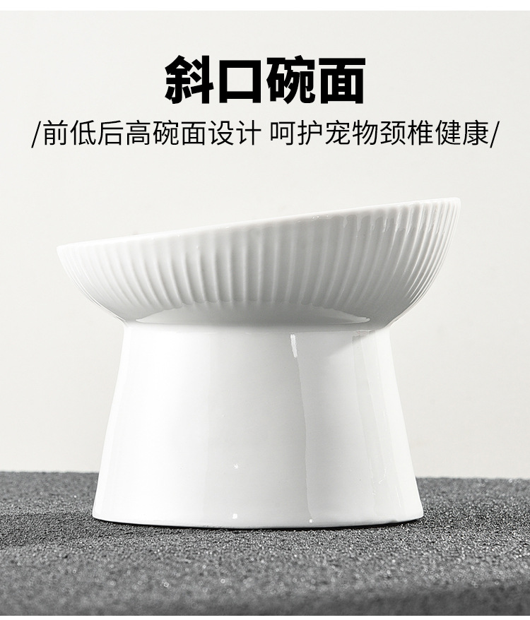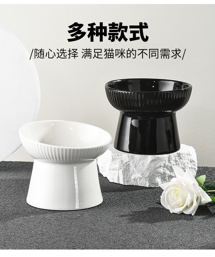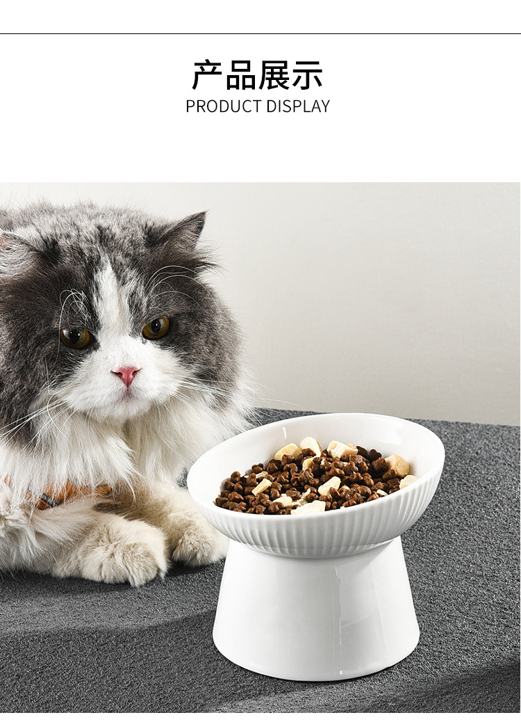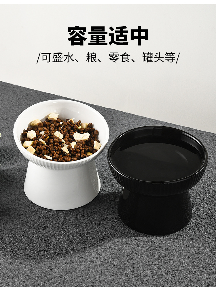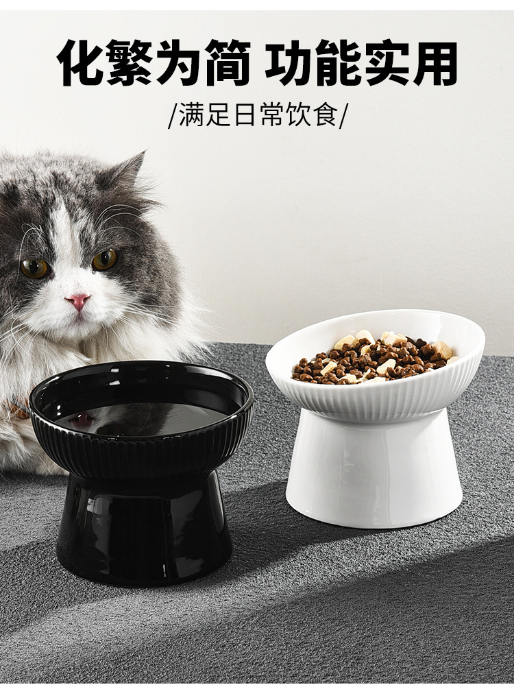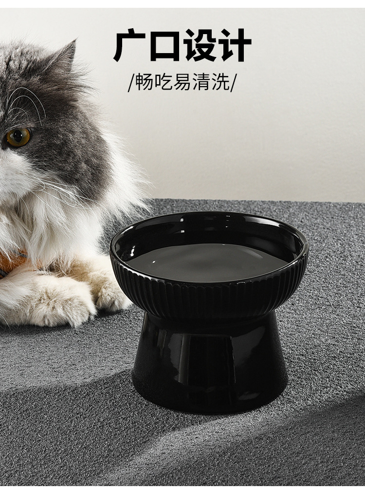 猫碗两用大容量日式光滑防黑下巴高脚陶瓷猫碗可爱饮水大型斜口碗