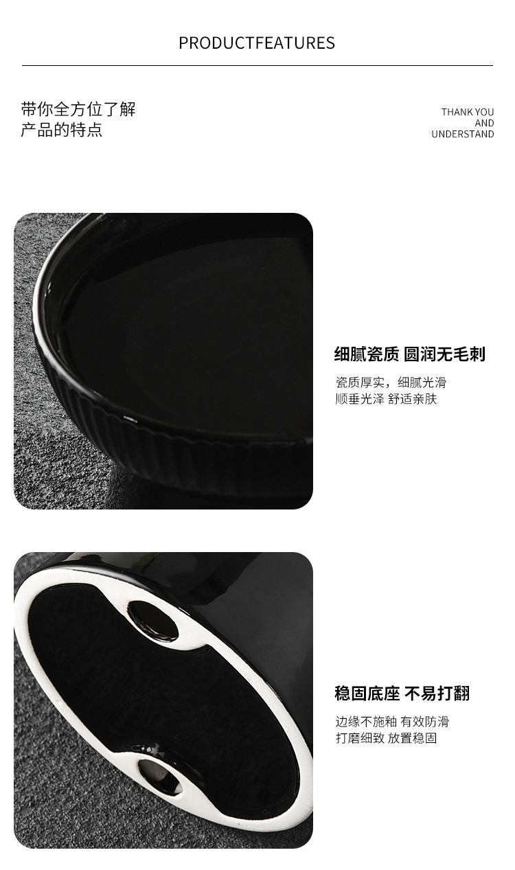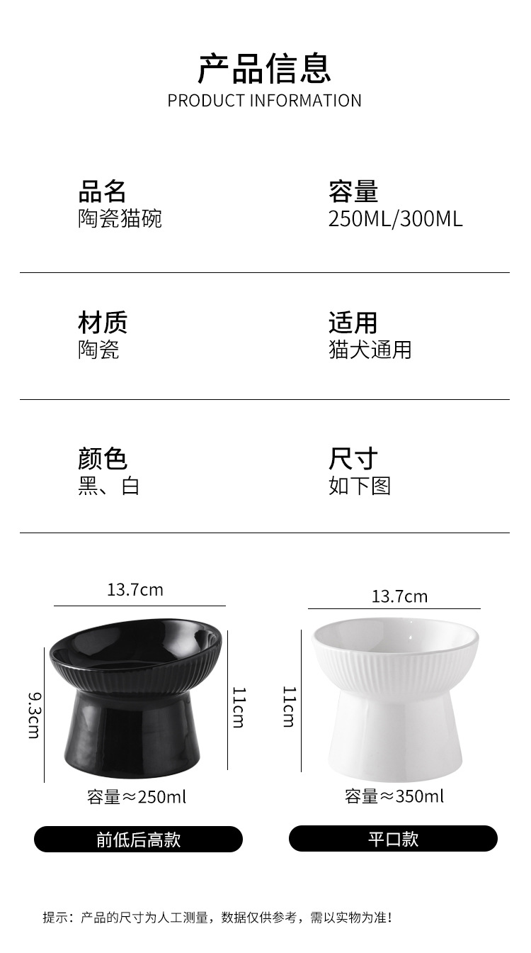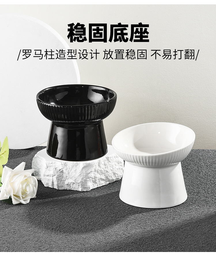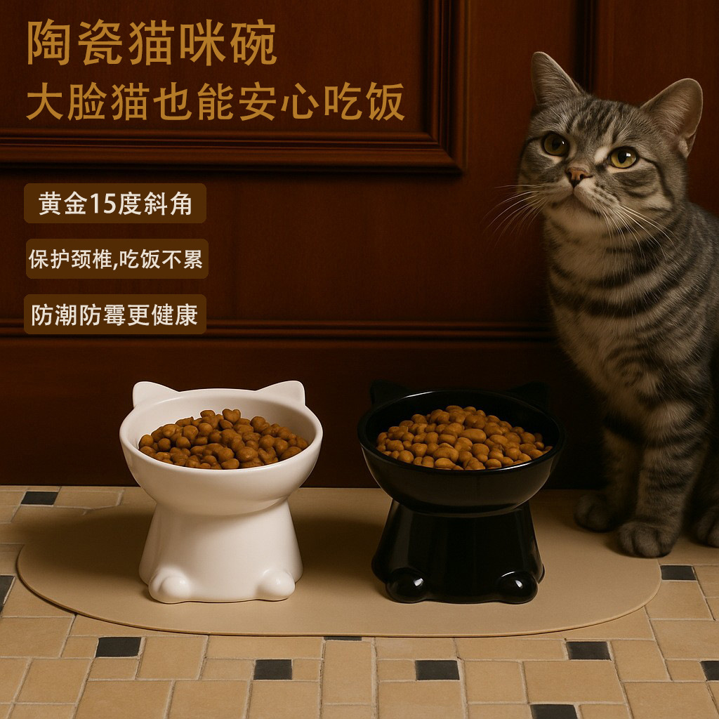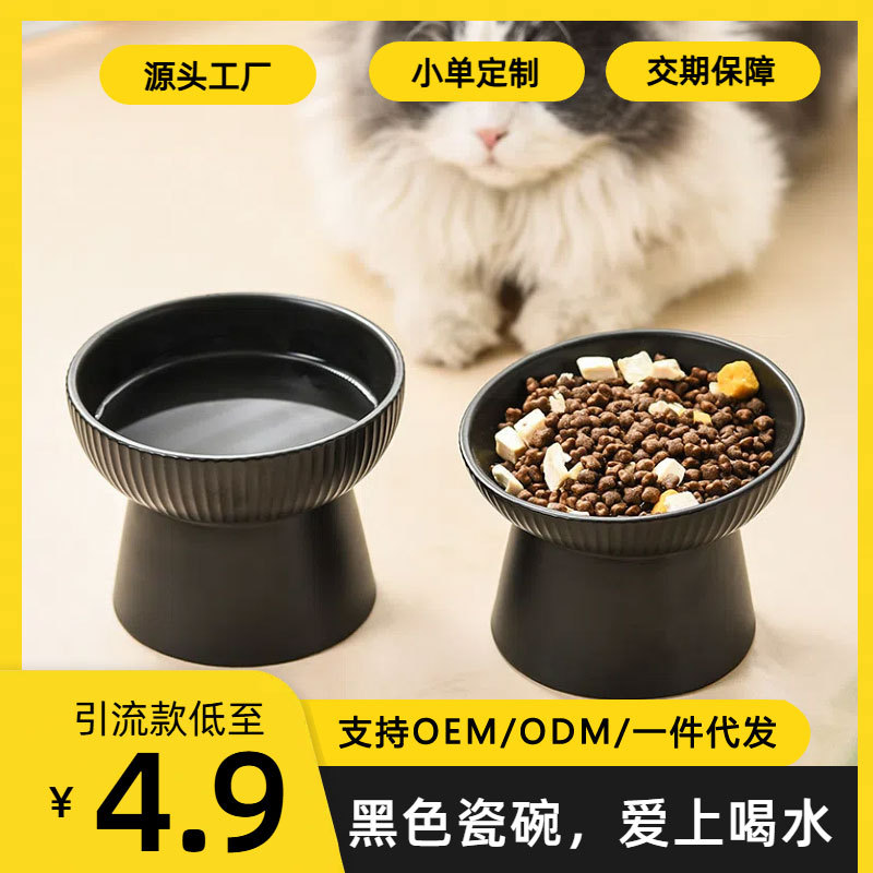 猫碗两用大容量日式光滑防黑下巴高脚陶瓷猫碗可爱饮水大型斜口碗