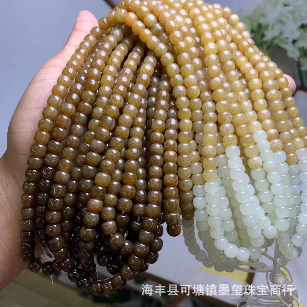 和田玉新疆糖料6x7m古いビーズペンダント108仏珠多輪手串diy散珠部品卸売り工場