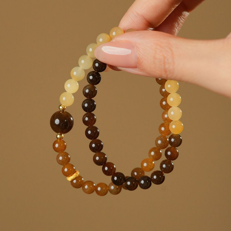 《朝与暮》新疆且末糖和田玉糖玉手串女款红糖料双圈手链翡翠玉石