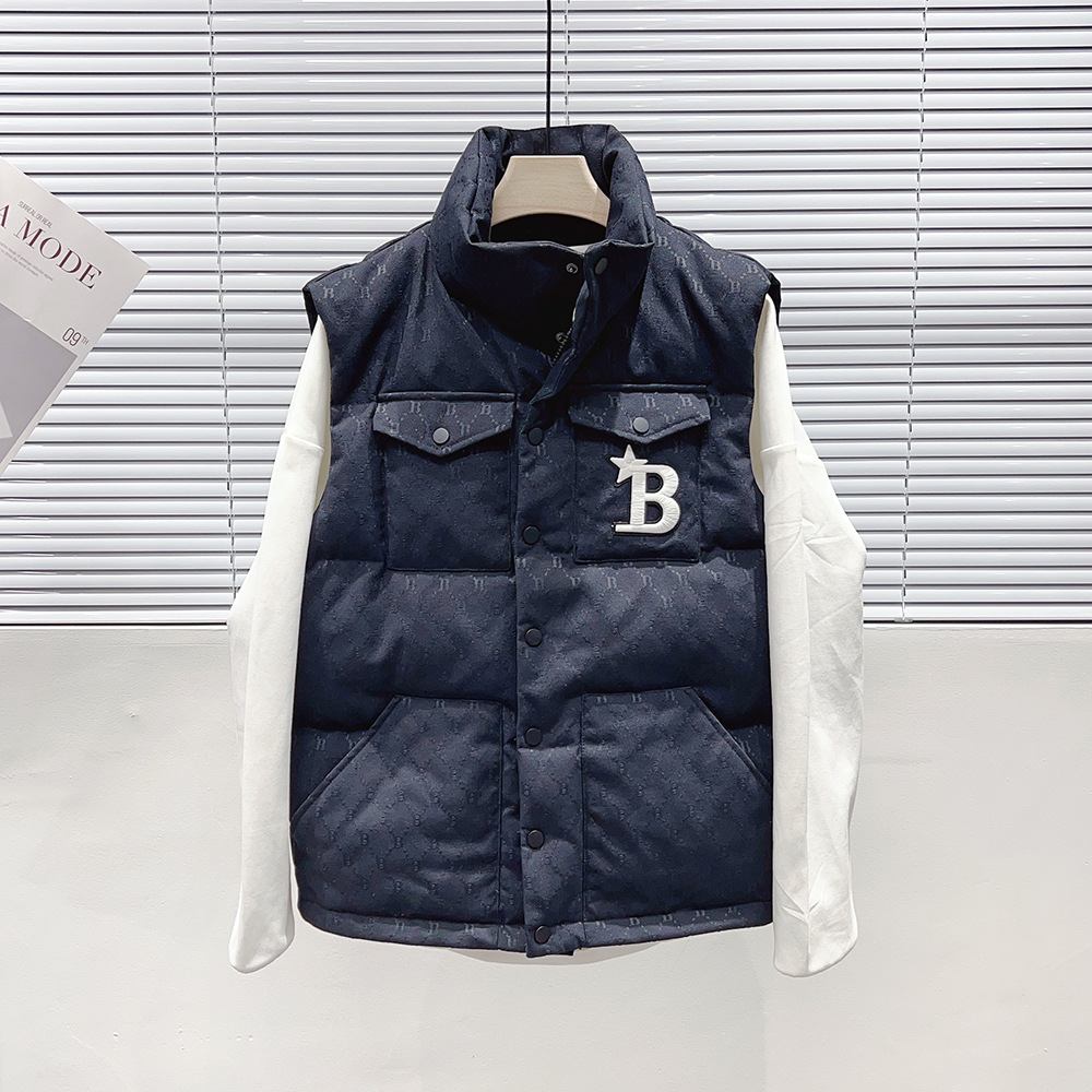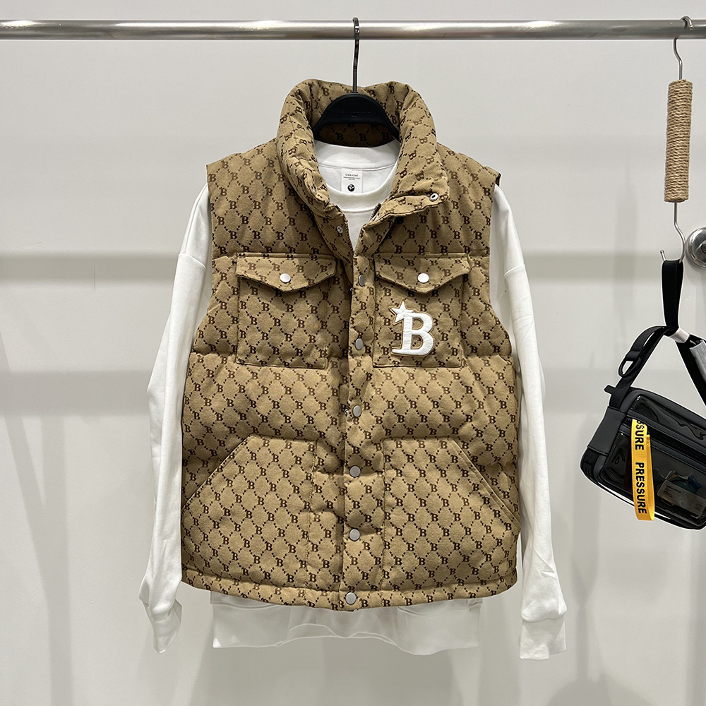 2025年新作メンズダウンベスト、ファッショナブルで多用途、暖かいダウンジャケット、刺繍入り厚手保温ダウンジャケット