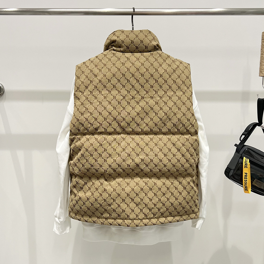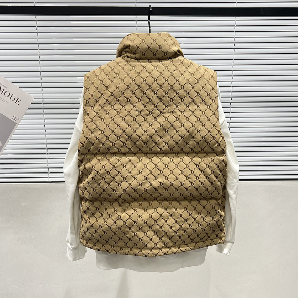 原创设计2025新款卡其色提花羽绒马甲加厚立领多口袋保暖潮流马甲