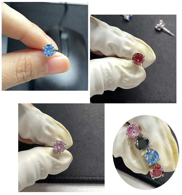 四爪モザイクカラー莫桑ドリルピアス女性純銀ネジ耳栓シンプルで豪華なデザインの耳飾り