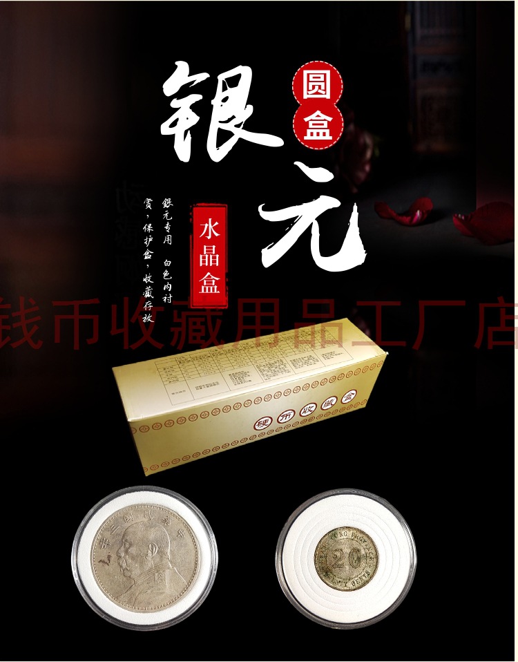 木质钱币托盘评级币展示盘收纳带垫圆盒纸夹铜钱铜板银元保护盘