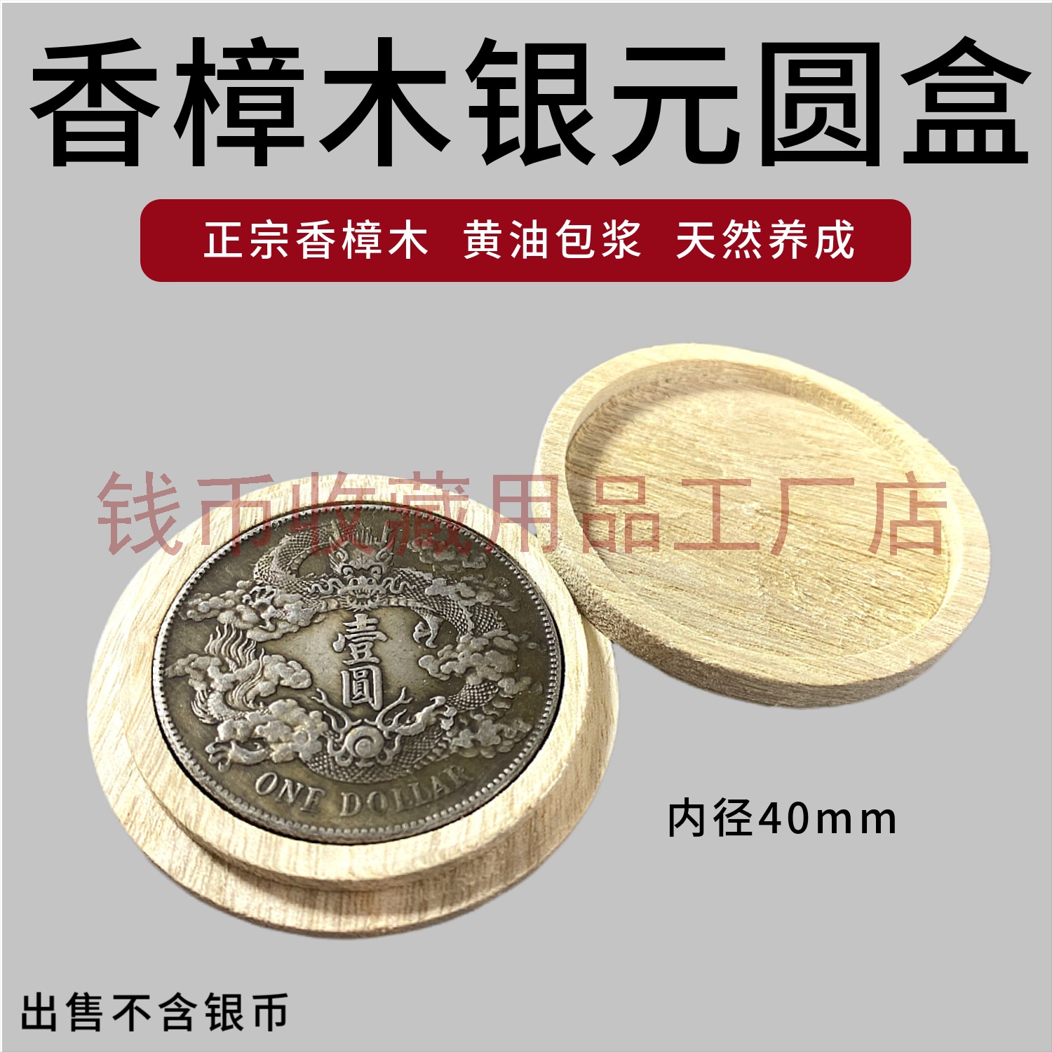 香樟木银元盒袁大头圆盒实木钱币收藏小银币养包浆盒利器收藏盒